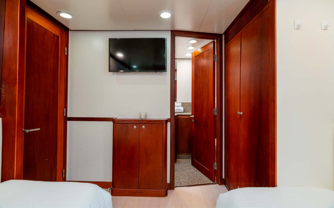 She is able to accommodate up to 9 charter guests in 4 cabins.
