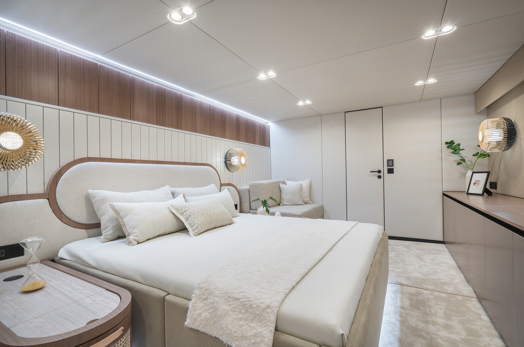 She can accommodate eight guests in four suites across both hulls and charters will be managed by an onboard team of four.