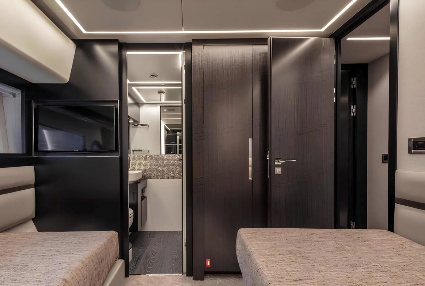Up to 9 guests can be accommodated in 4 ensuite cabins with a crew of four. At anchor and underway stabilisers guarantee a comfortable charter.