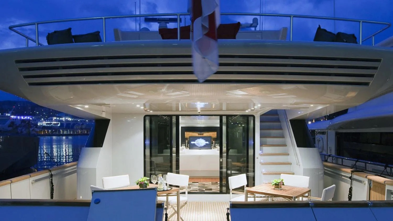 Another al fresco dining setting can be found on the main deck aft which is sheltered by the flybridge overhang.