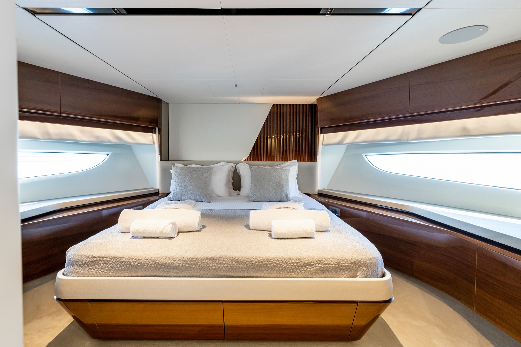 NOTABLE FEATURES OF VISTA: ~Sociable exterior ~Panoramic windows in main salon ~Submersible swim platform ~At anchor ...
