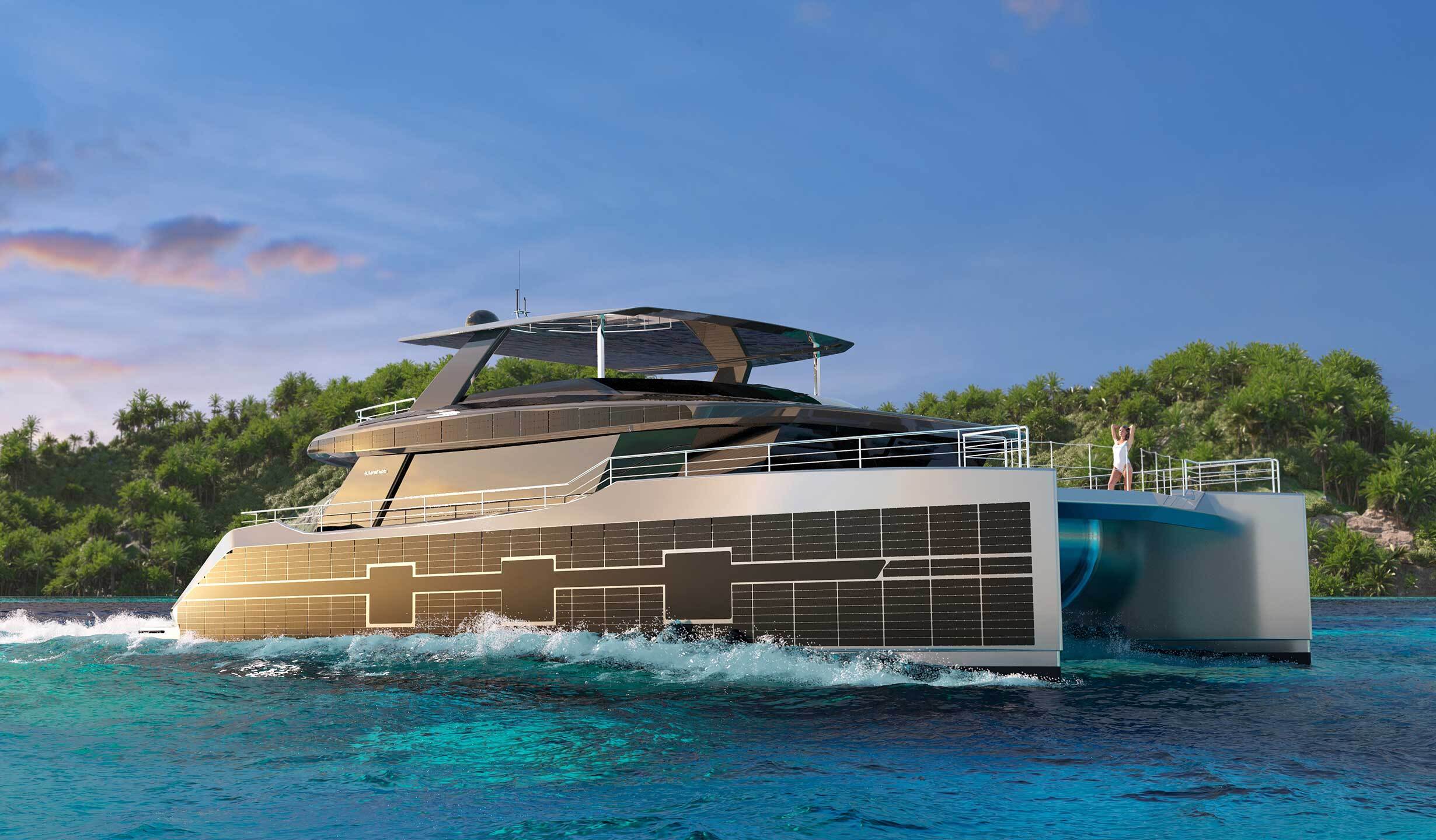 Her light and ultramodern solar power system covers up to 200m² of the yachts surface area and maximises solar energy generation, achieving 36kWp of capacity. Up to 8 guests can be accommodated on board.