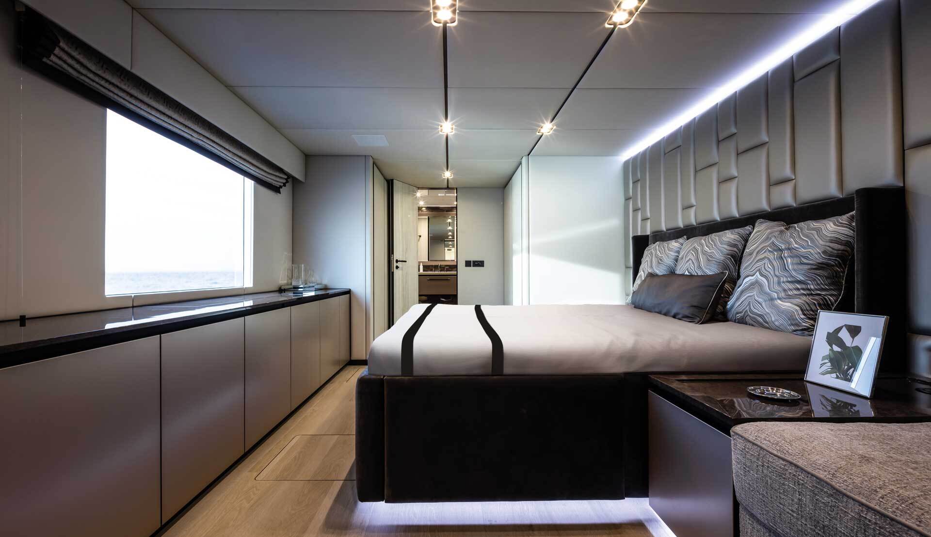 Her light and ultramodern solar power system covers up to 200m² of the yachts surface area and maximises solar energy generation, achieving 36kWp of capacity. Up to 8 guests can be accommodated on board.