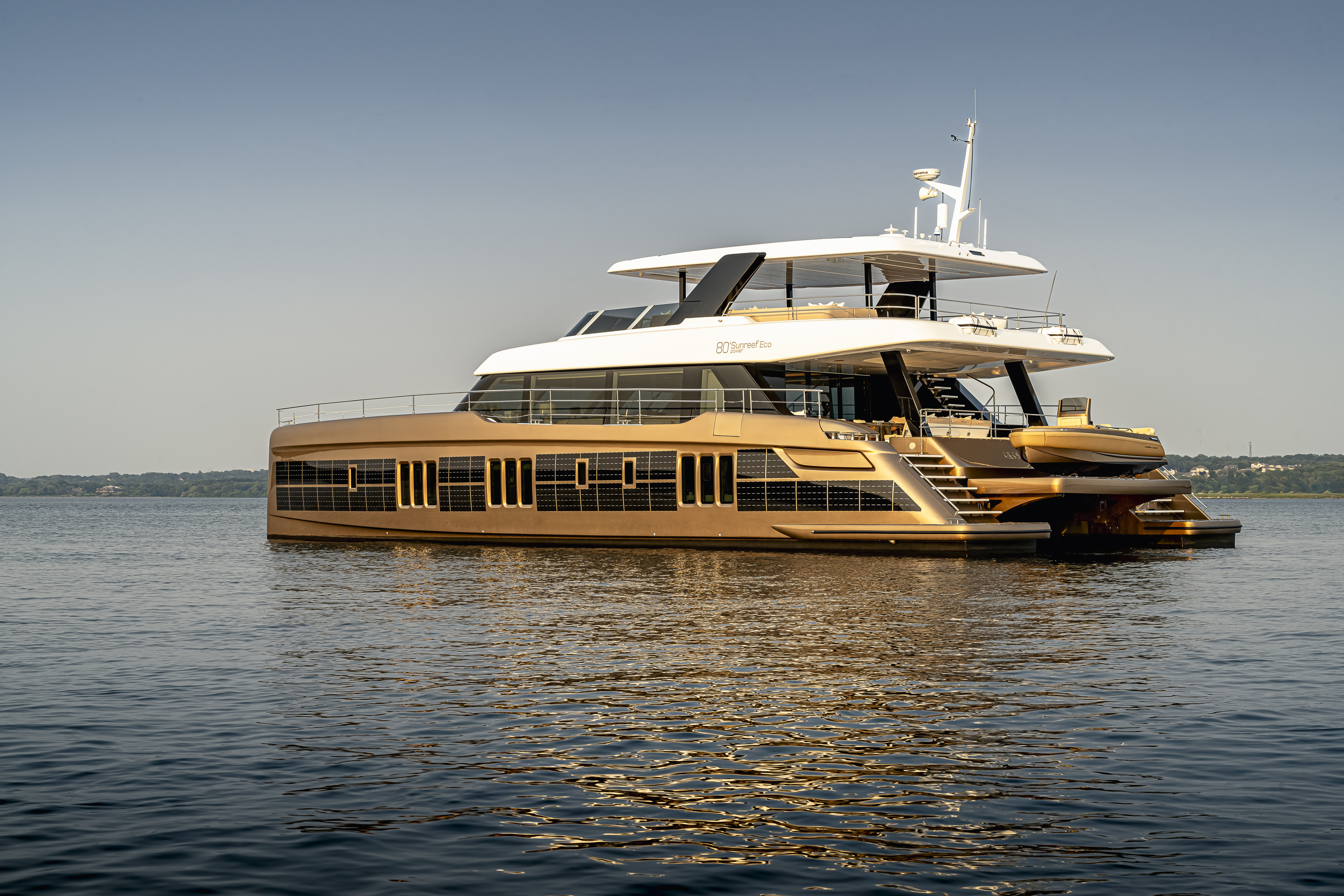 Polish yacht builder Sunreef Yachts has developed the 24.38 m (80') motor yacht SOL as their most innovative eco-responsible catamaran. Her light and ultramodern solar power system covers up to 200m² of the yachts surface area and maximises solar energy generation, achieving 36kWp of capacity.