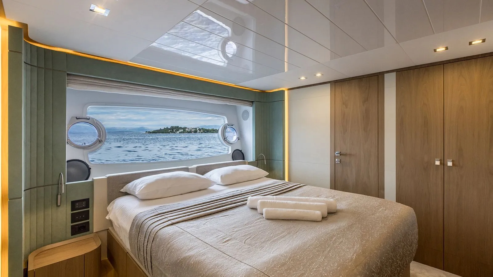 Up to ten guests can be accommodated in five suites which include a main deck master. There is additional accommodation for the five crew members.