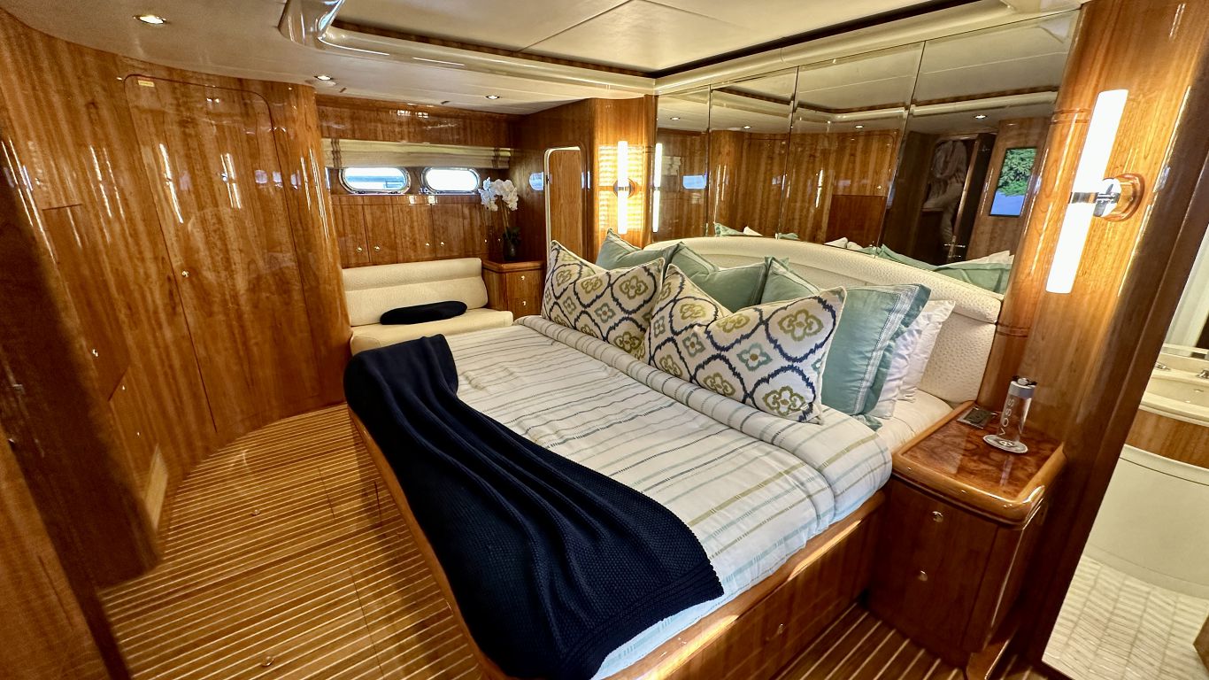 Carol Ann) is a 24.99 m (82') Horizon yacht built in 2001 and refitted in 2023. Her ice blue hull makes her stand out from the crowd and she offers a great selection of fishing equipment. Up to six guests can be accommodated in three suites and there is a crew of three on board.