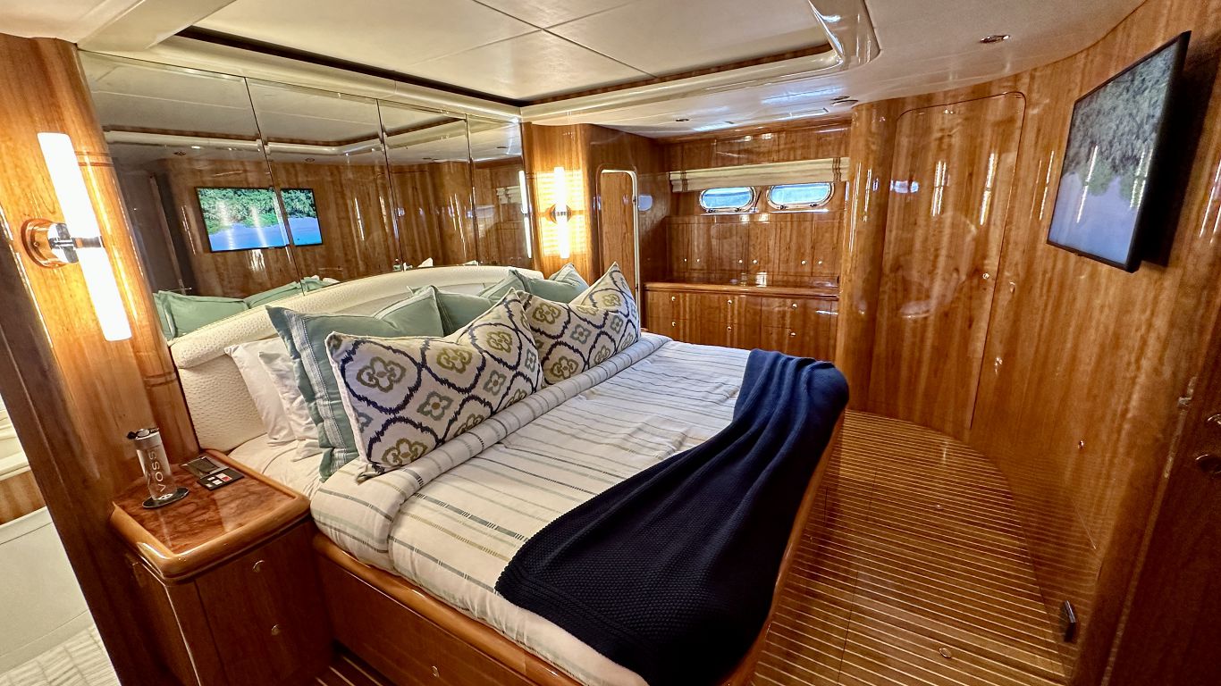 Carol Ann) is a 24.99 m (82') Horizon yacht built in 2001 and refitted in 2023. Her ice blue hull makes her stand out from the crowd and she offers a great selection of fishing equipment. Up to six guests can be accommodated in three suites and there is a crew of three on board.