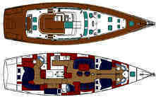 The Beneteau 57 Mediterranean crewed charter yacht is designed to move fast, safely and in utmost comfort. The Bénéteau 57 is another brilliant design by Farr Yachts. The running rig, leading back to the cockpit will allow perfect sail control, whatever the conditions.