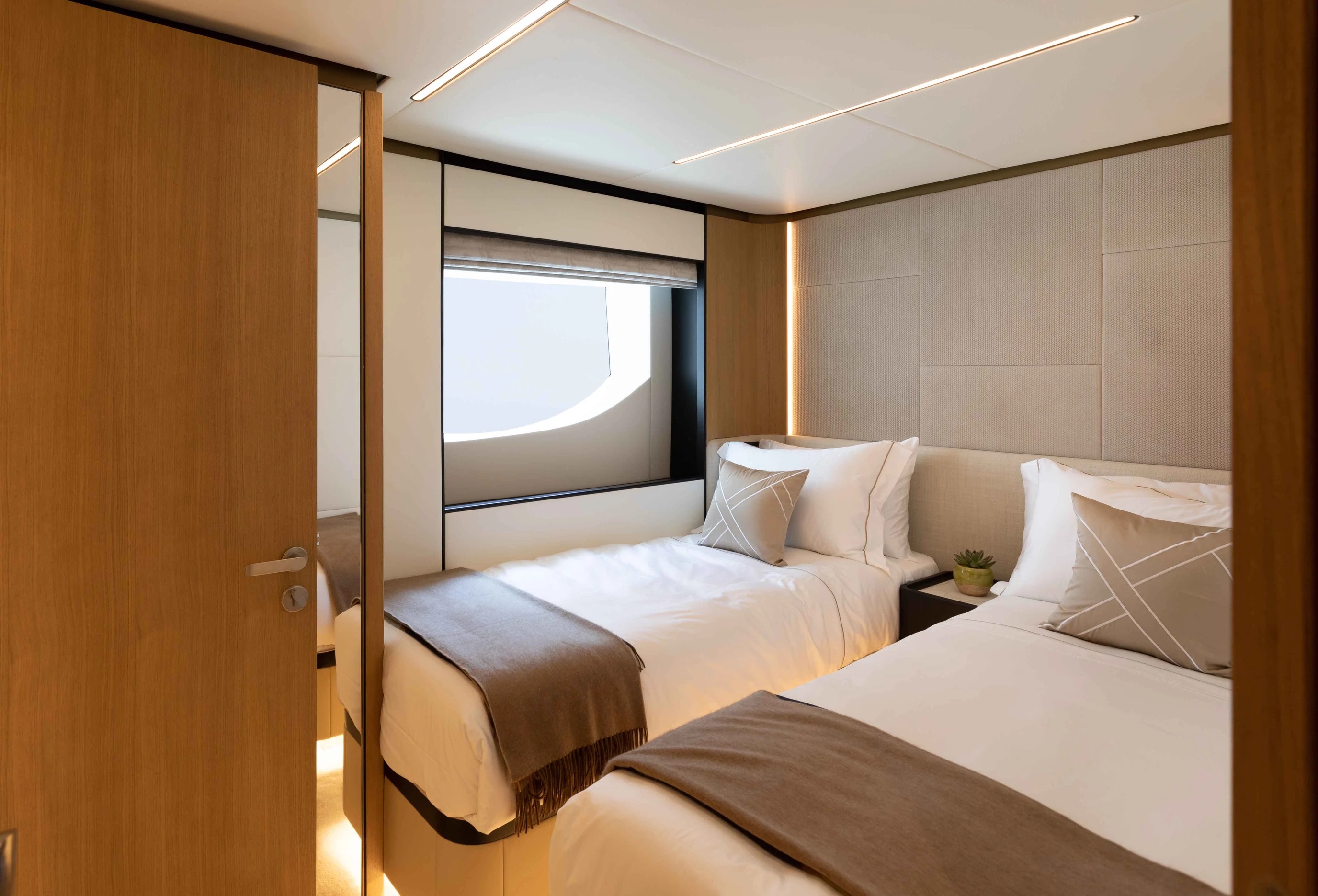 She can accommodate ten charter guests in six suites with additional cabins for the six crew members.