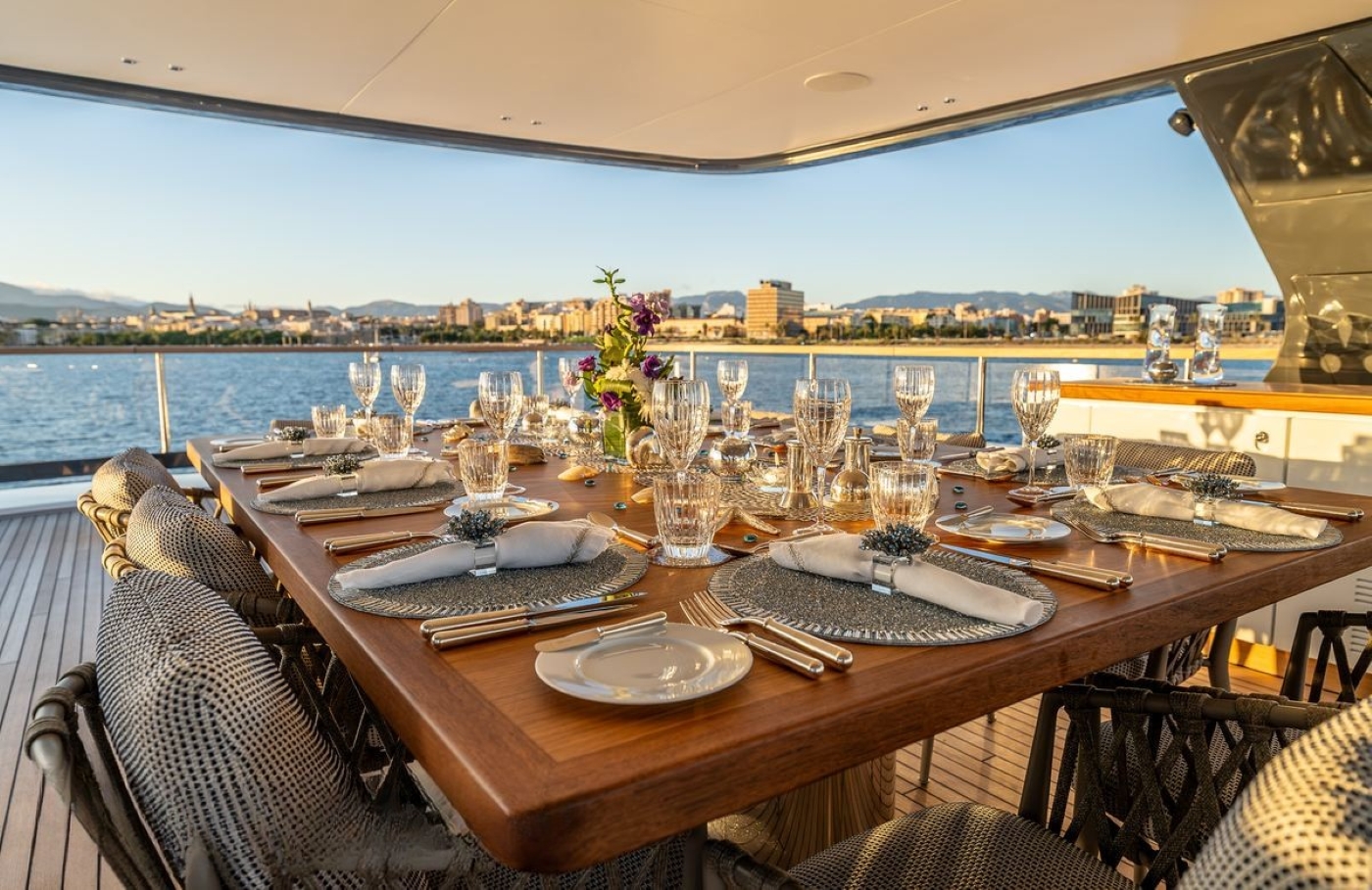 Her sprawling sundeck features plenty of sunpads, an alfresco dining table for 10, a bar and a dedicated lounging area, plus a luxurious circular jacuzzi creating a sociable space for guests to gather. The foredeck offers a quieter, more private alternative if guests are looking for a peaceful afternoon.