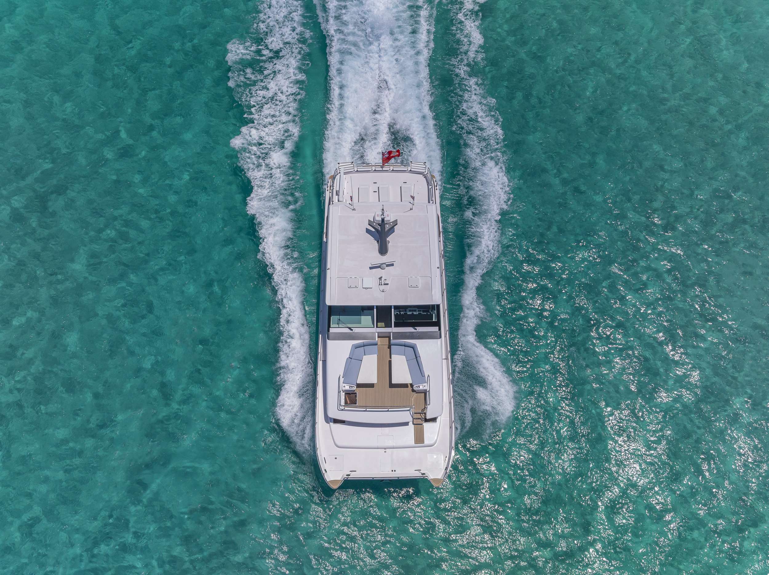 The luxury power catamaran yacht OMAKASE measures 20.73 m (68') and was built by Horizon Yachts in 2023. This spacious and comfortable vessel incorporates three ensuite cabins for up to six charter guests and has further accommodation for a crew of two.