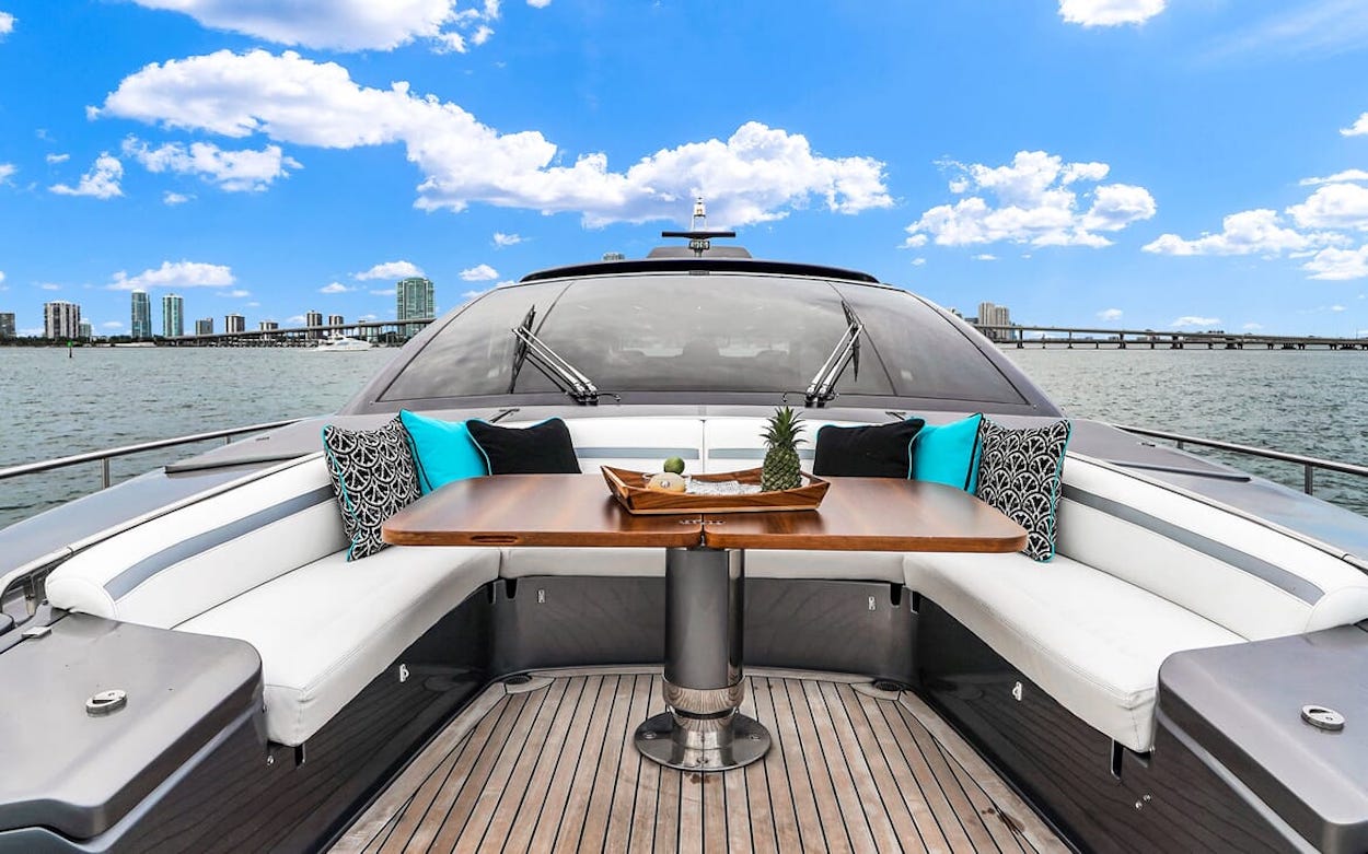 The aft salon is arranged with three sofas offering plenty of seating around a coffee table, perfect for socialising or movie night. The décor is light, bright and contemporary with access directly out to the main deck aft thus creating one huge sociable space.