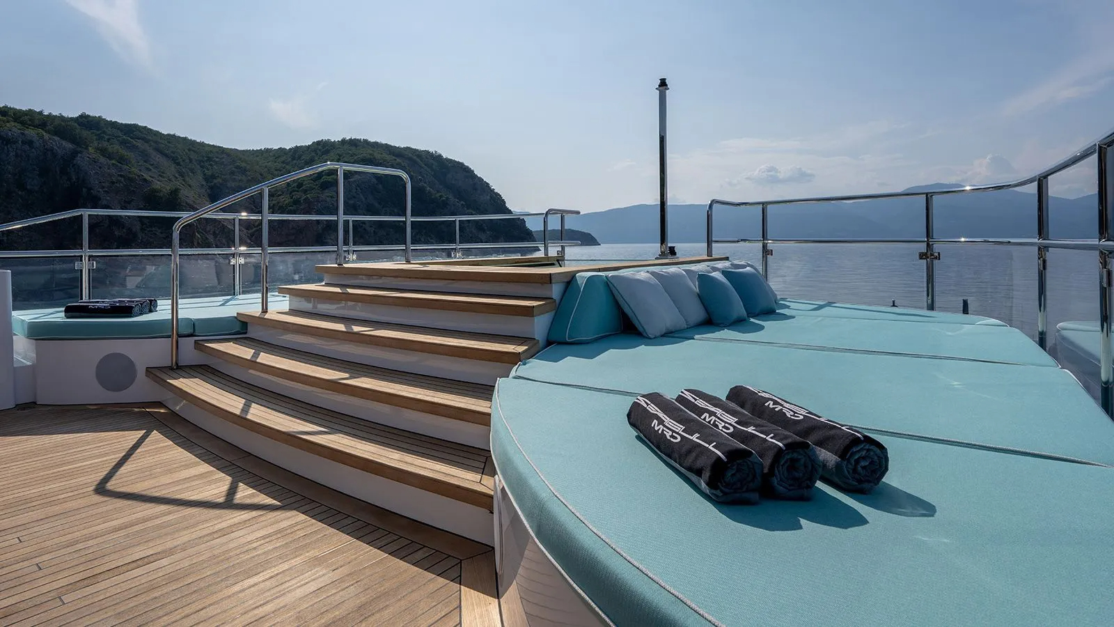 Her tri-deck design offers superb deck spaces and a light-filled interior making her an excellent charter choice for families or friends. With accommodation for up to 12 guests everyone is welcome and will be looked after by a crew of nine.