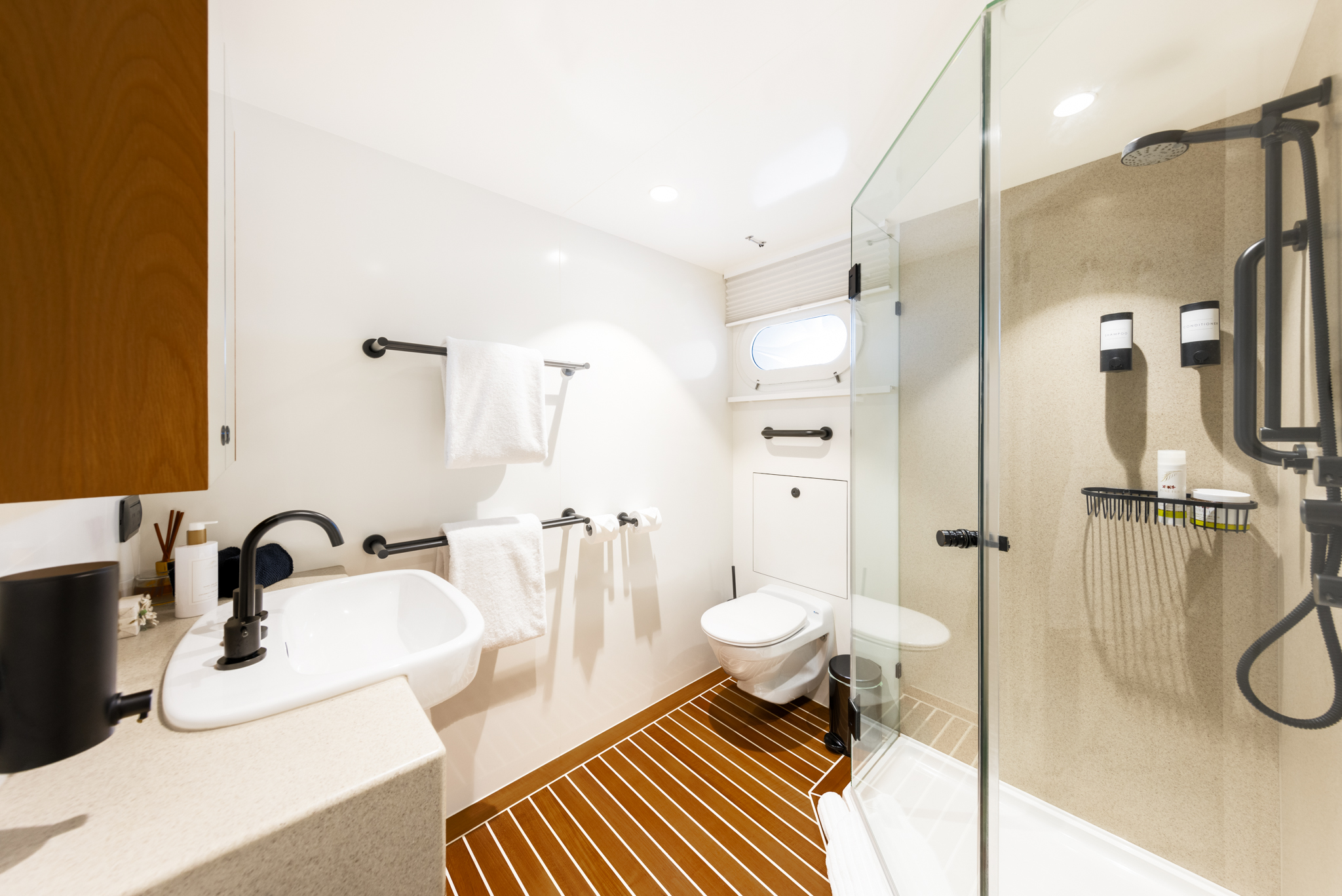 Luxury Expedition Motor yacht EVOLUTION can accommodate 8 guests in one King Master Stateroom with en suite and 2 VIP Staterooms with en suite and one double ensuite stateroom. All staterooms have individually controlled air-conditioning.