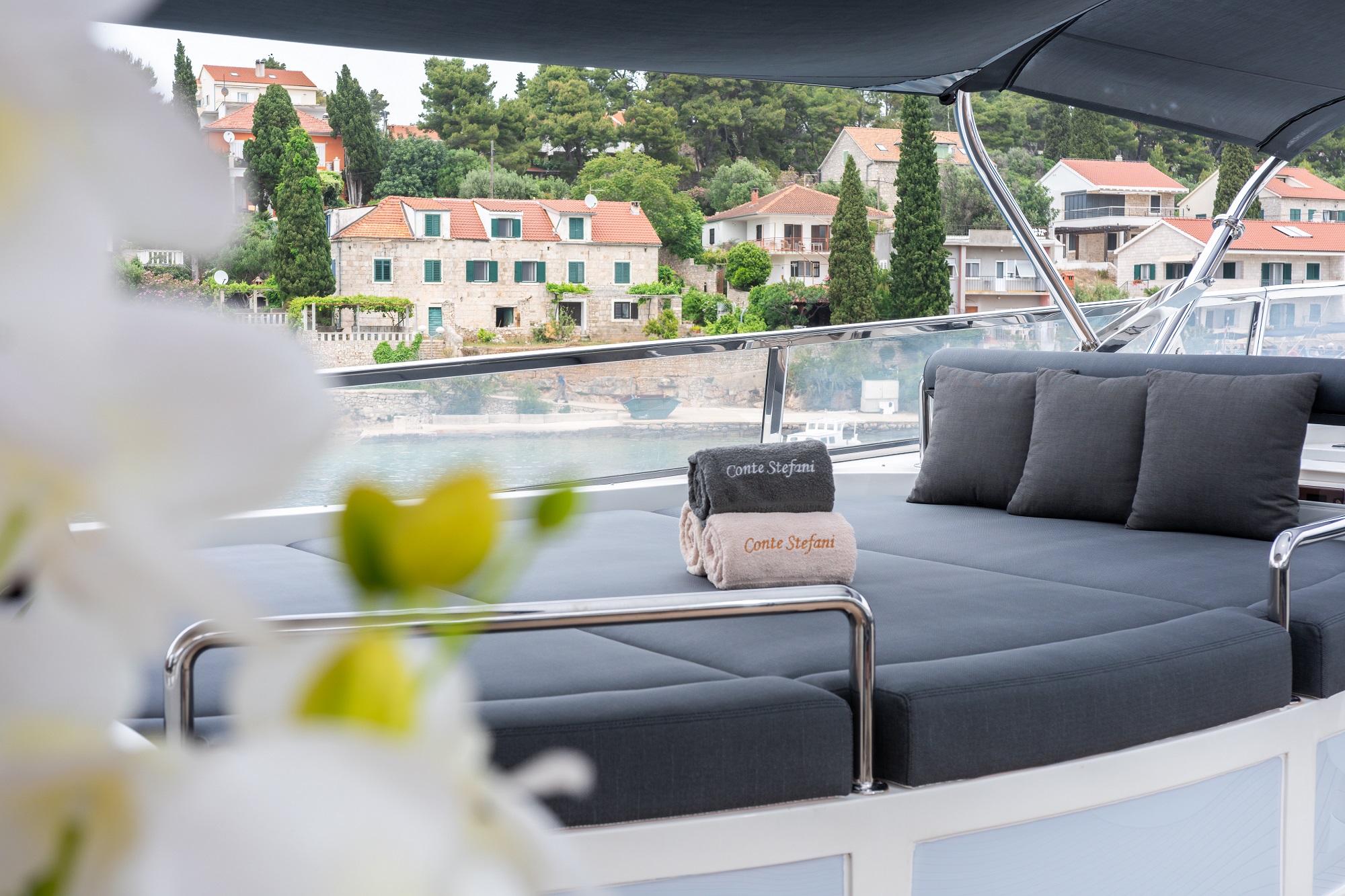 NOTABLE FEATURES OF CONTE STEFANI: ~Zoned sun deck ~Opulent interior ~Perfect family accommodation ~Selection of water toys ~At anchor and underway stabilisers ~Air conditioning ~WiFi