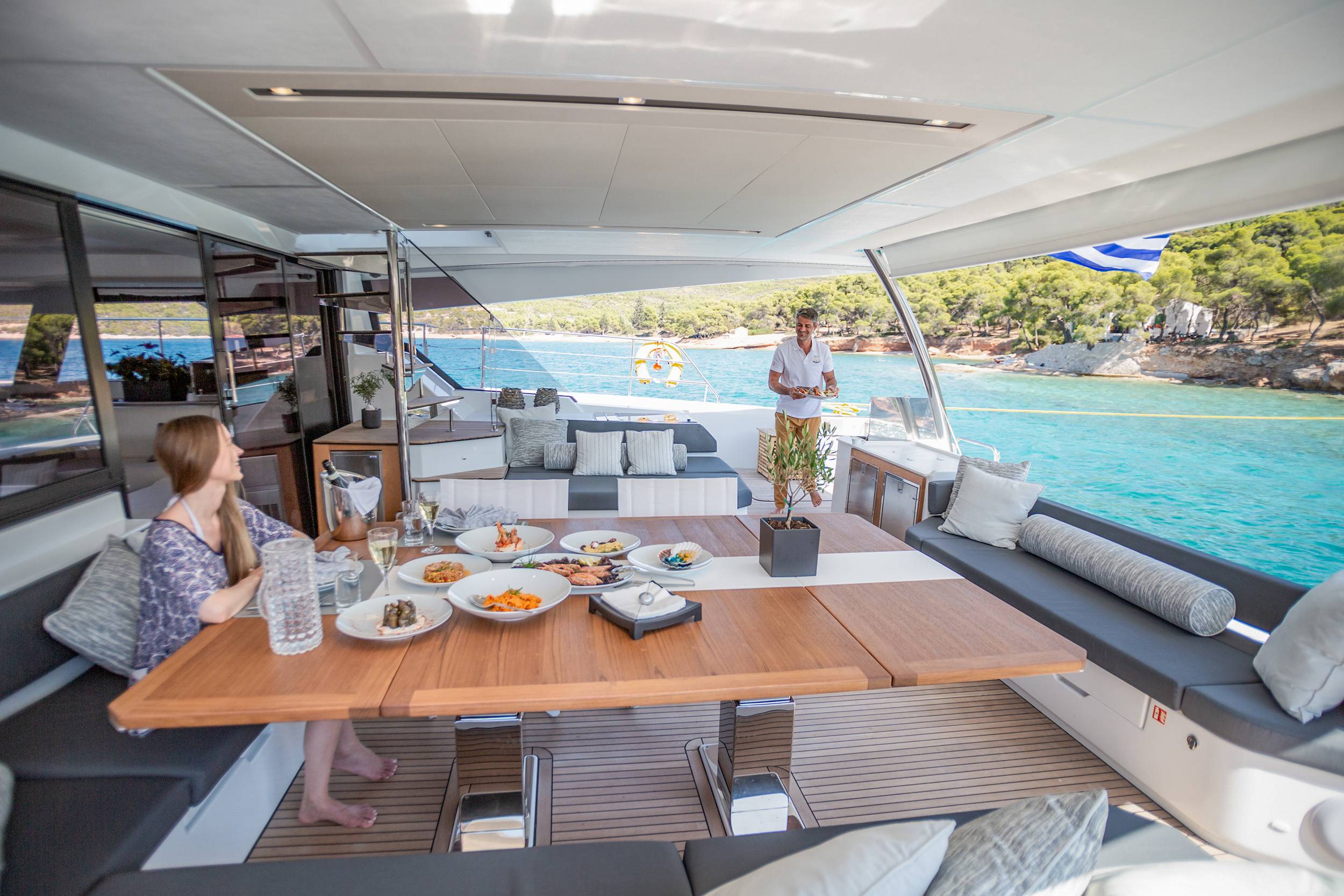 Catamarans have wide beams and consequently offer generous deck spaces, plus D2 also boasts a flybridge adding further al fresco entertainment space.