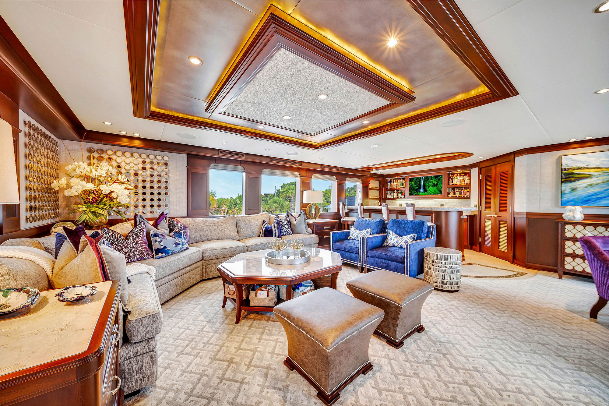 The upper deck aft is perfect for leisurely evenings on deck enjoying al fresco dinner around the generous dining table and lounge area aft, overlooking the stern.