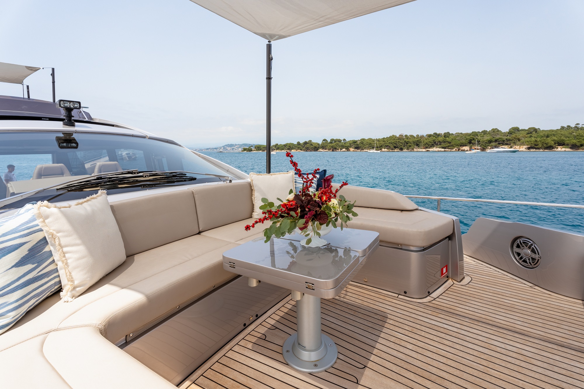 There are numerous lounging and sunbathing areas on board, including The bow area, the aft main deck area as well as the flybridge.