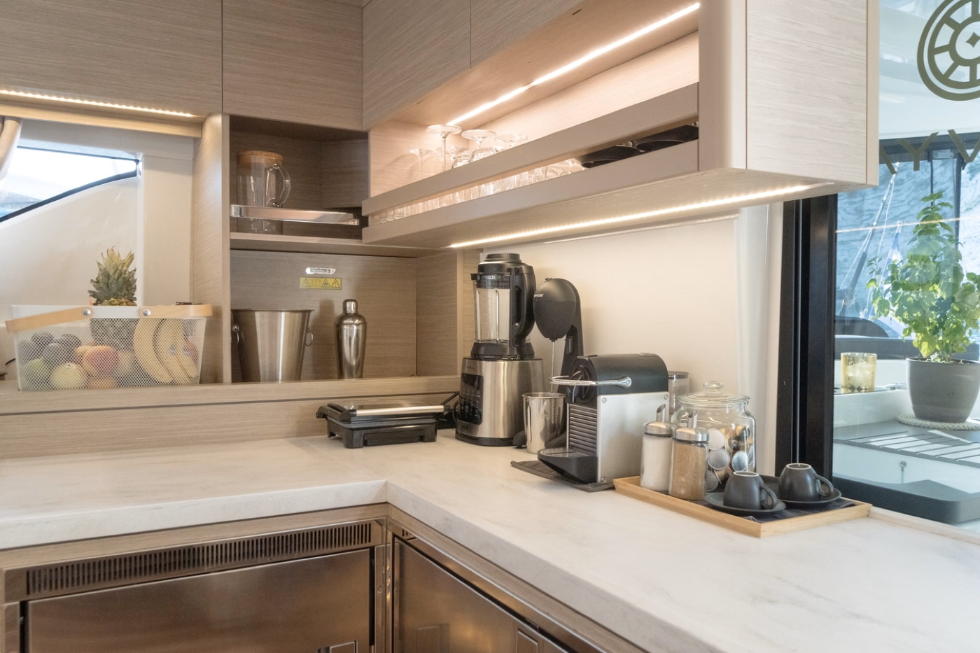 Sailing yacht NAVYA is a 13.505 m (44' 5") catamaran launched in 2023 by Lagoon Yachts with interior design by Nauta Design. She is beautifully presented with everything charter guests could wish for and generous accommodation for ten guests in five suites. A two-person crew are on board to cater for guests needs on the charter.