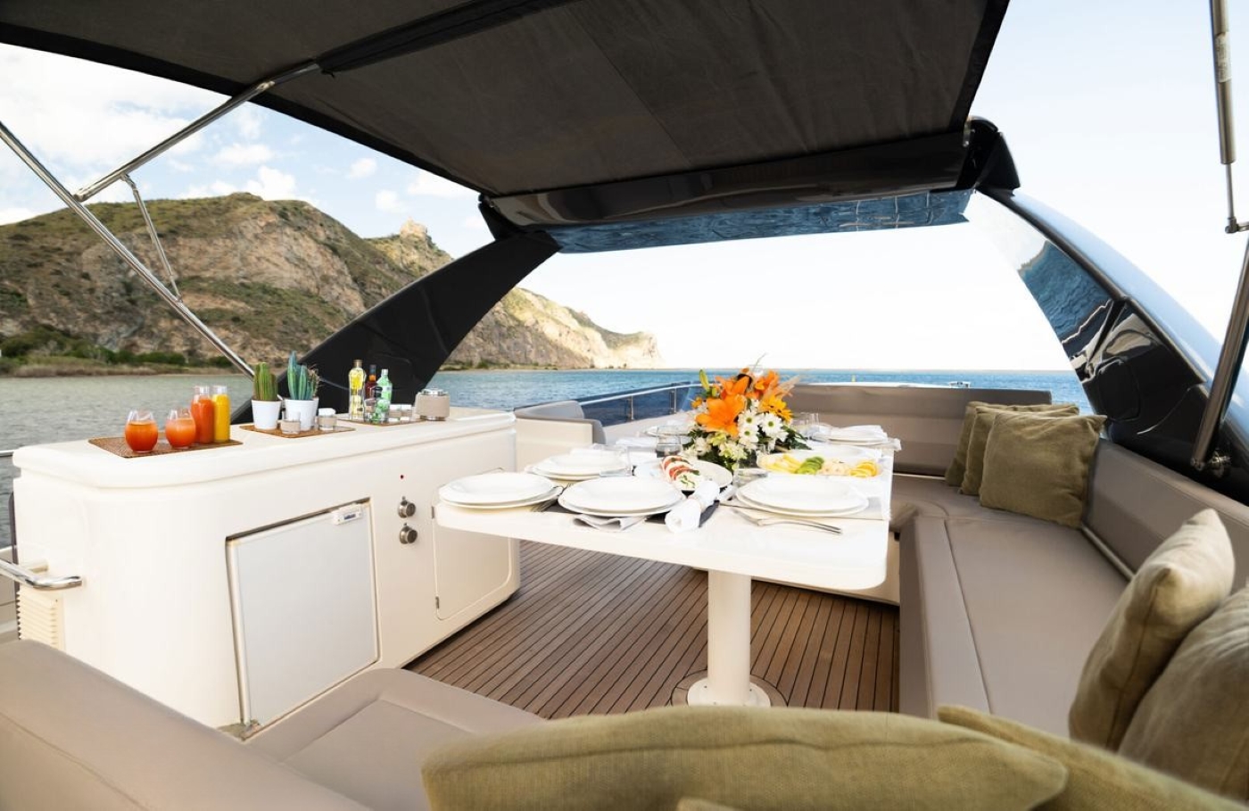 NOTABLE FEATURES OF SEA SONS: ~Ferretti quality design and build ~Two al fresco dining areas ~Stylish salon ~Comfortable cabins ~Air conditioning ~WiFi