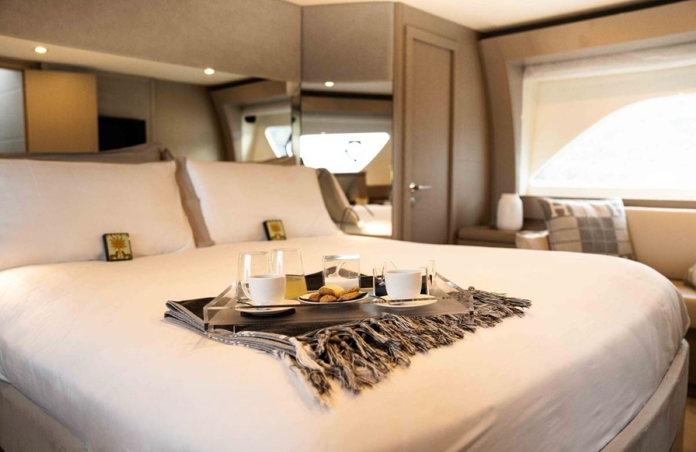 Motor yacht SEA SONS is a 22.20 m (72' 10") Ferretti 700 flybridge yacht built in 2016 and packed with stylish features, state-of-the-art technology and deluxe comfort. Accommodation is for up to eight guests in four contemporary ensuite cabins plus additional cabins for the three crew members.