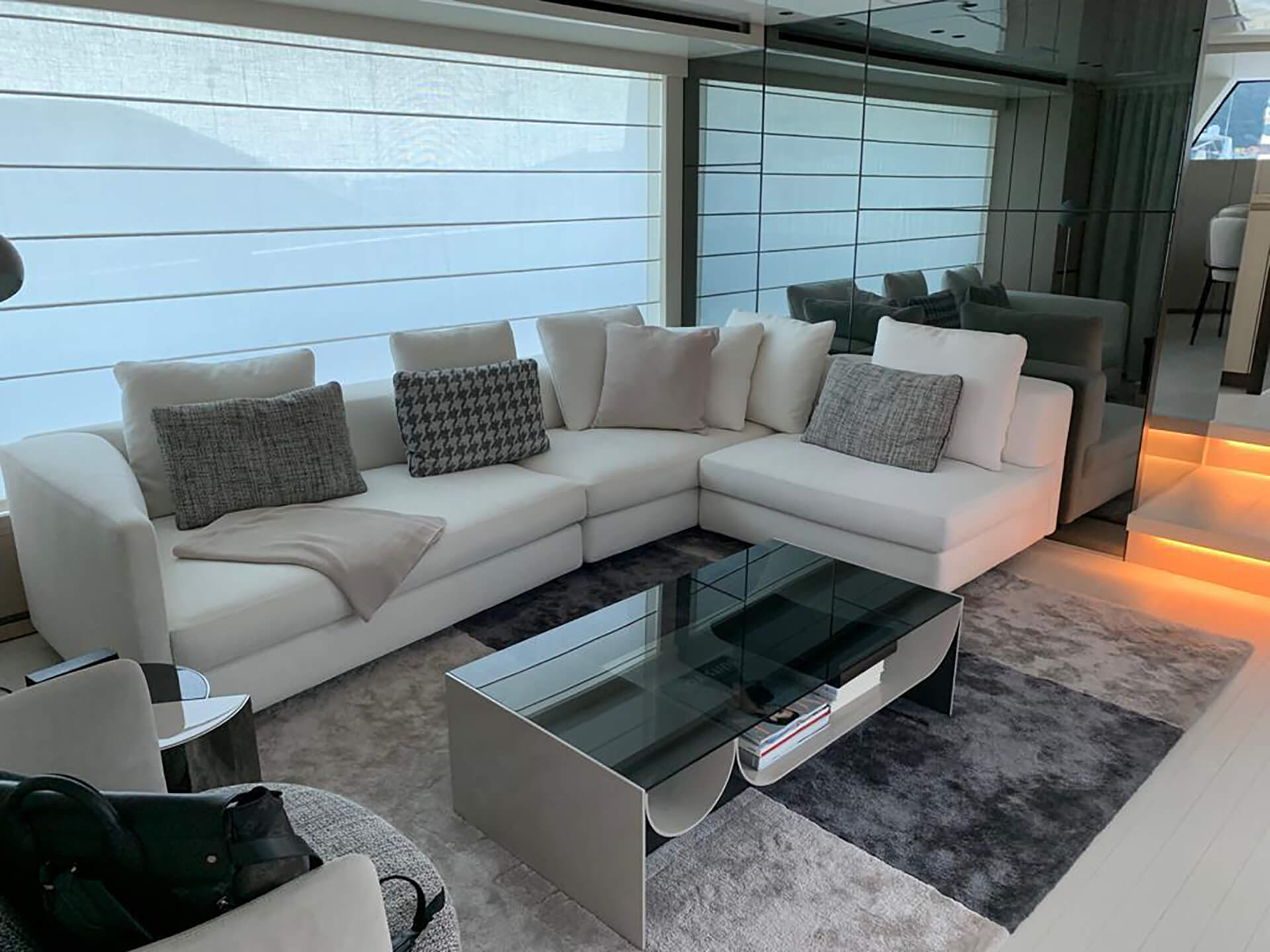 The main salon is configured slightly differently from many yachts of this size, giving her a unique feel. The aft lounge leads through to an open plan galley and dining room creating a great family atmosphere or is perfect for foodies who enjoy ‘chefs table’ style dinners.