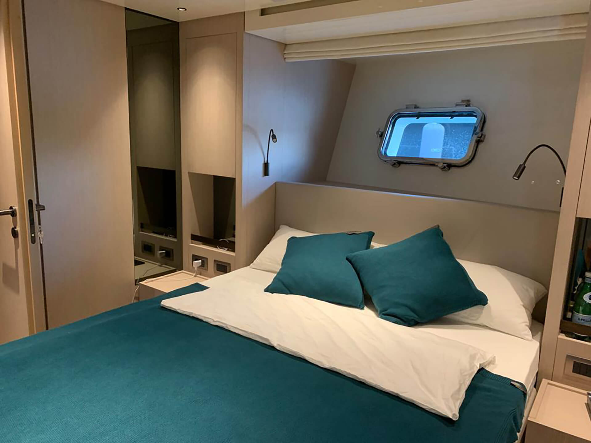 28 Seven), a 2019 Sanlorenzo SX76, for a perfect yacht charter for up to seven guests. With spacious decks, stylish interiors and three staterooms, guests will be delighted as they cruise with the three-person crew.