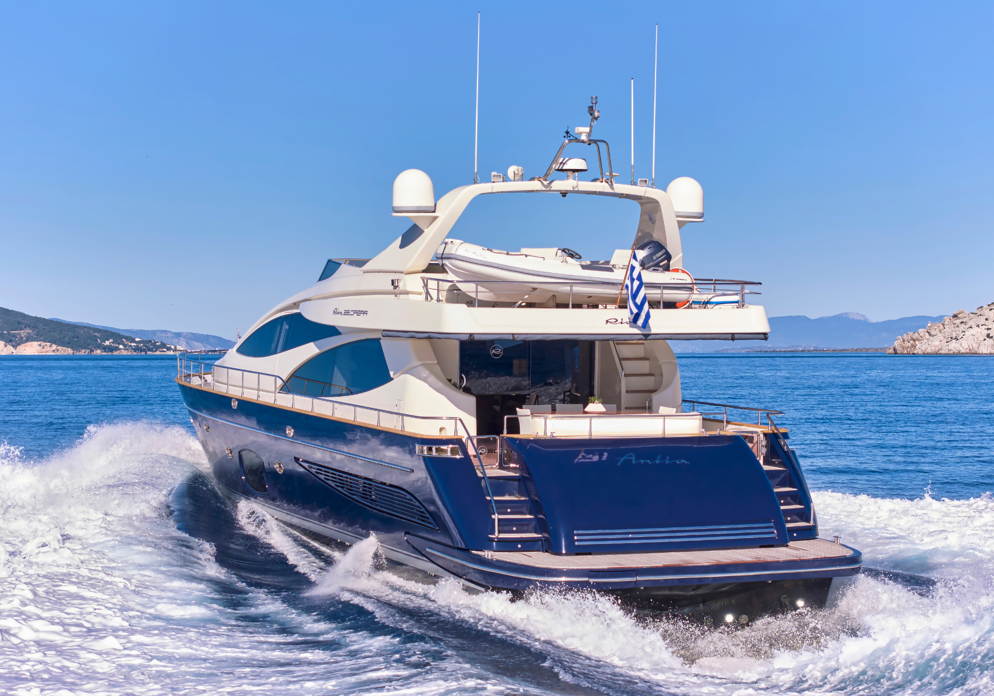 Motor yacht is a 26.00 m (85' 4") Riva Opera 85S built in 2005 and refitted in 2024. The combination of the navy-blue hull and cream deck creates perfect harmony and make her a great choice for you next charter vacation. Up to eight guests can be accommodated on board with a crew of four.