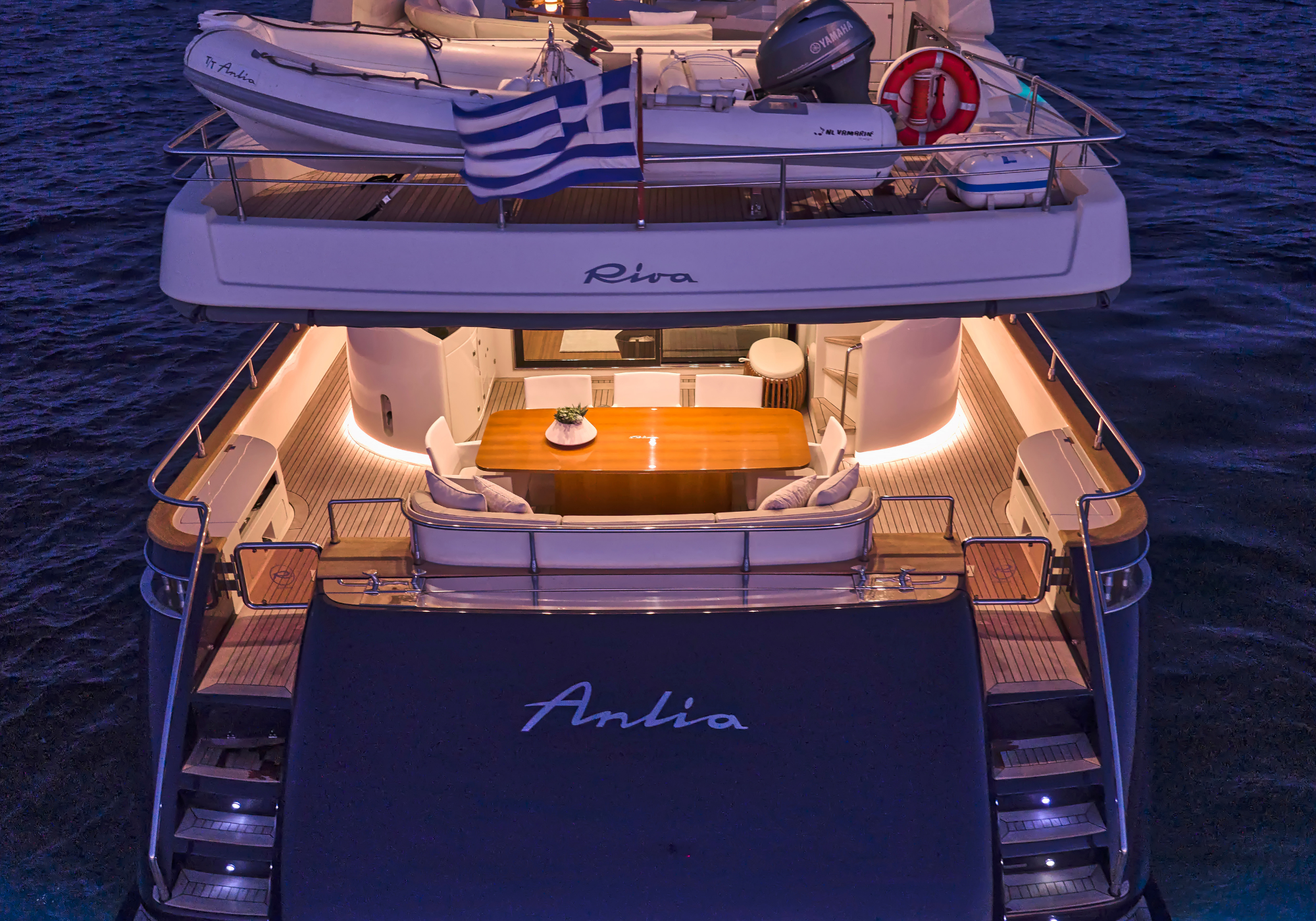 NOTABLE FEATURES OF ANLIA: ~Open flybridge ~Warm and welcoming interior ~Full beam master suite ~Water toys on request ~At anchor and underway stabilisers ~Air conditioning ~WiFi
