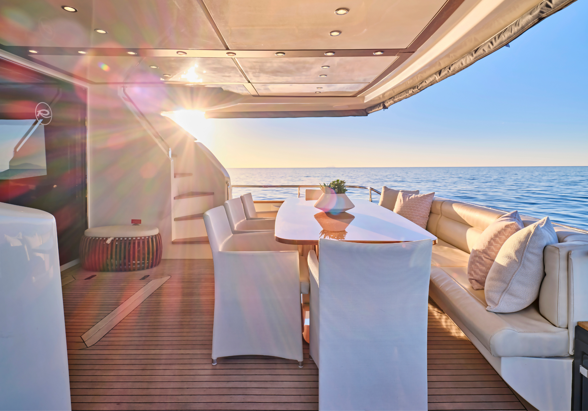 The combination of the navy-blue hull and cream deck creates perfect harmony and make her a great choice for you next charter vacation. Up to eight guests can be accommodated on board with a crew of four.