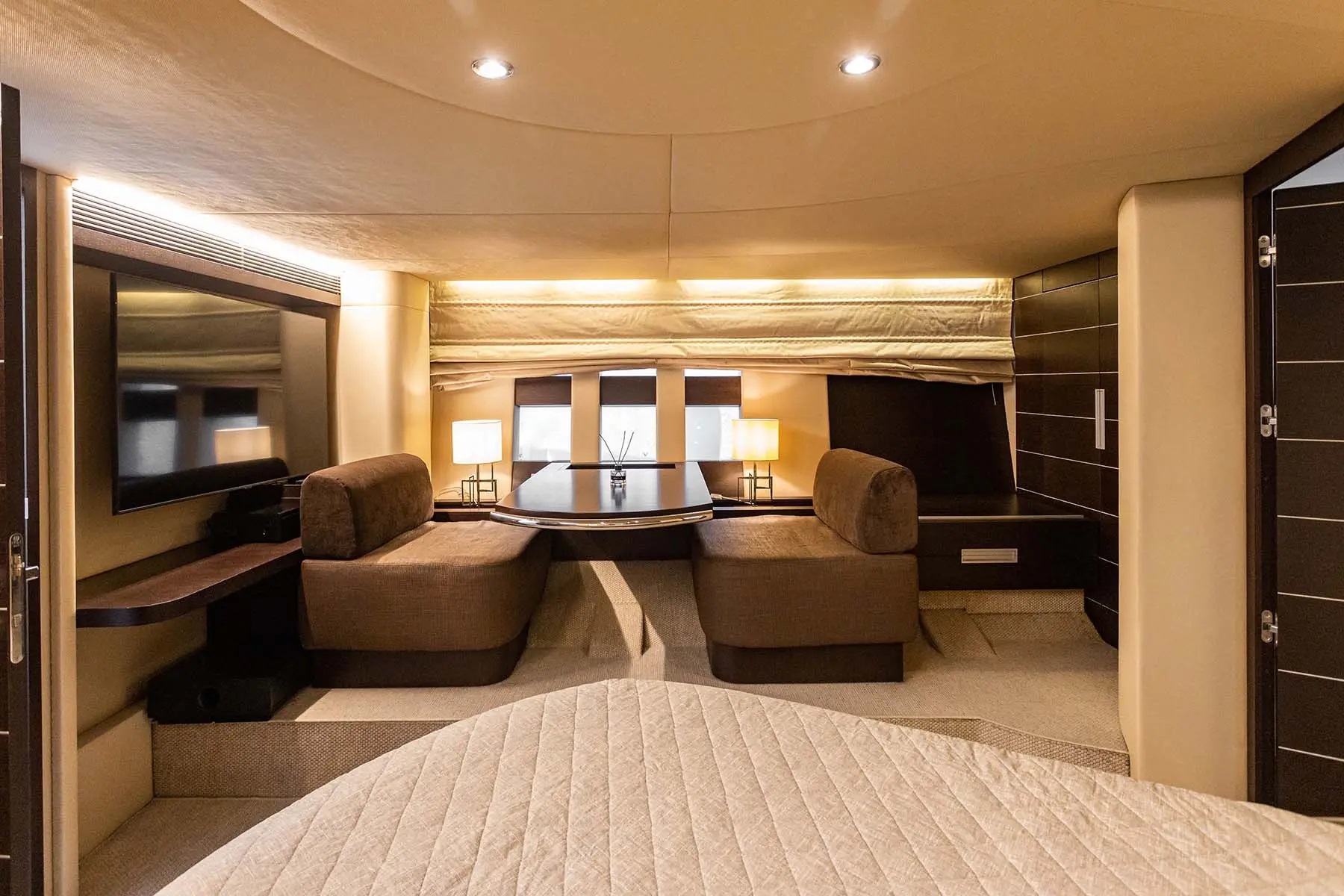 Up to six guests can be accommodated in three suites with three crew on board to manage the charter.