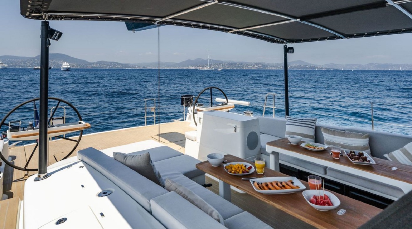 There is a lounge space opposite a dining area, with the galley positioned aft down a few steps. MYSTIC can accommodate 4 guests (max 5 with an additional child) and has 2 crew members.