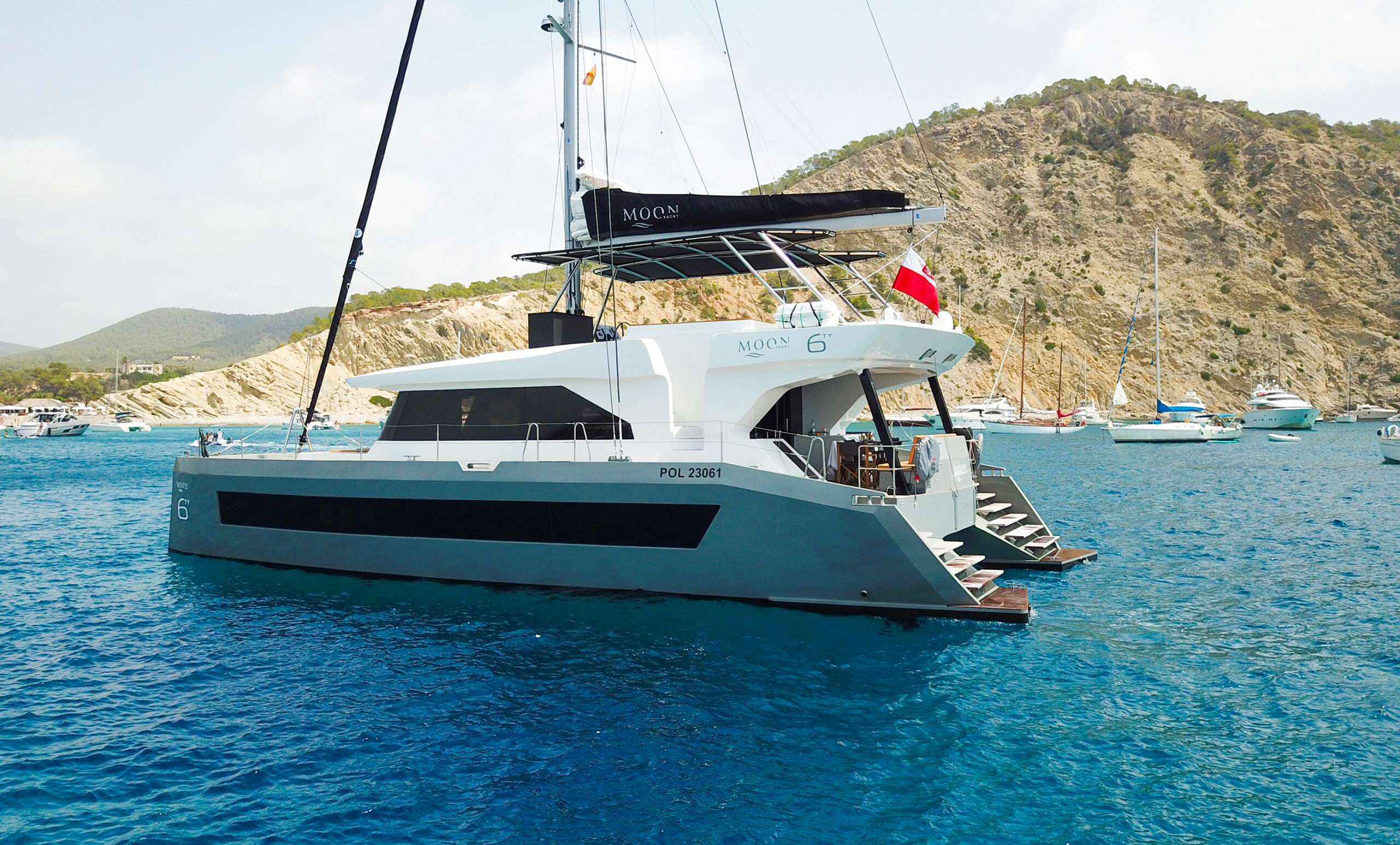 Stunning contemporary sailing catamaran with expansive deck spaces across her 18m length and 9.64m beam.