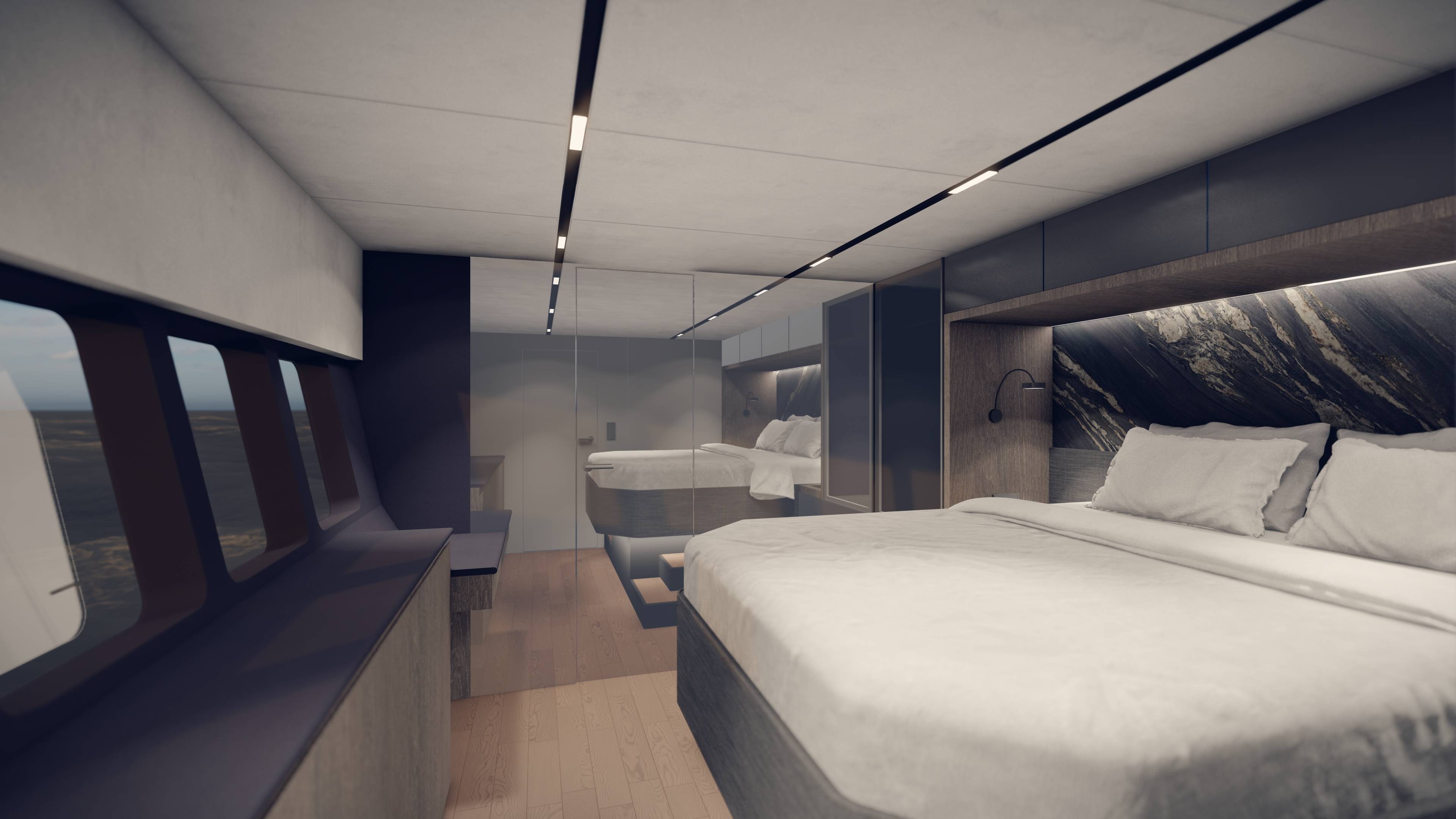 The contemporary flybridge design offers generous deck space, lovely interiors and accommodation for up to ten guests in five suites. There are also cabins for three crew members.