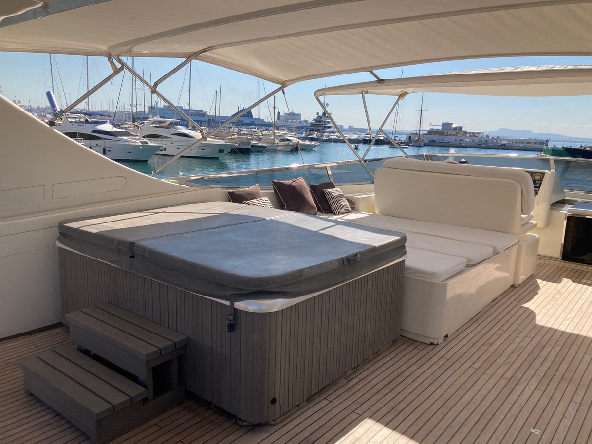 Motor yacht GEORG I is a 27.00 m (88' 7") Falcon flybridge yacht built in 2002, featuring a sun deck jacuzzi and plenty of guest space inside and out. She can accommodate up to ten guests in four suites with an on-board crew of four.