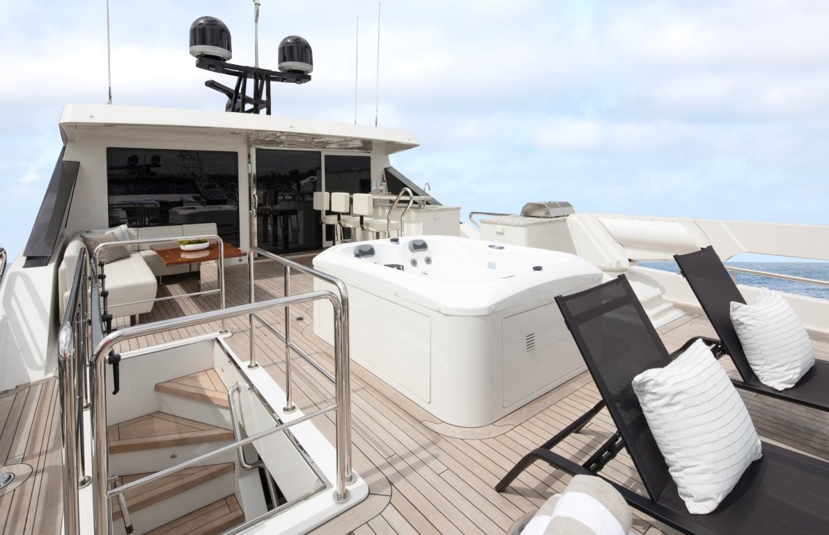Launched in 2024 she boasts state of the art finishes, main deck master and sundeck jacuzzi. Eight guests can be accommodated in four suites while five crew are on board to cater to the guests needs throughout the charter.