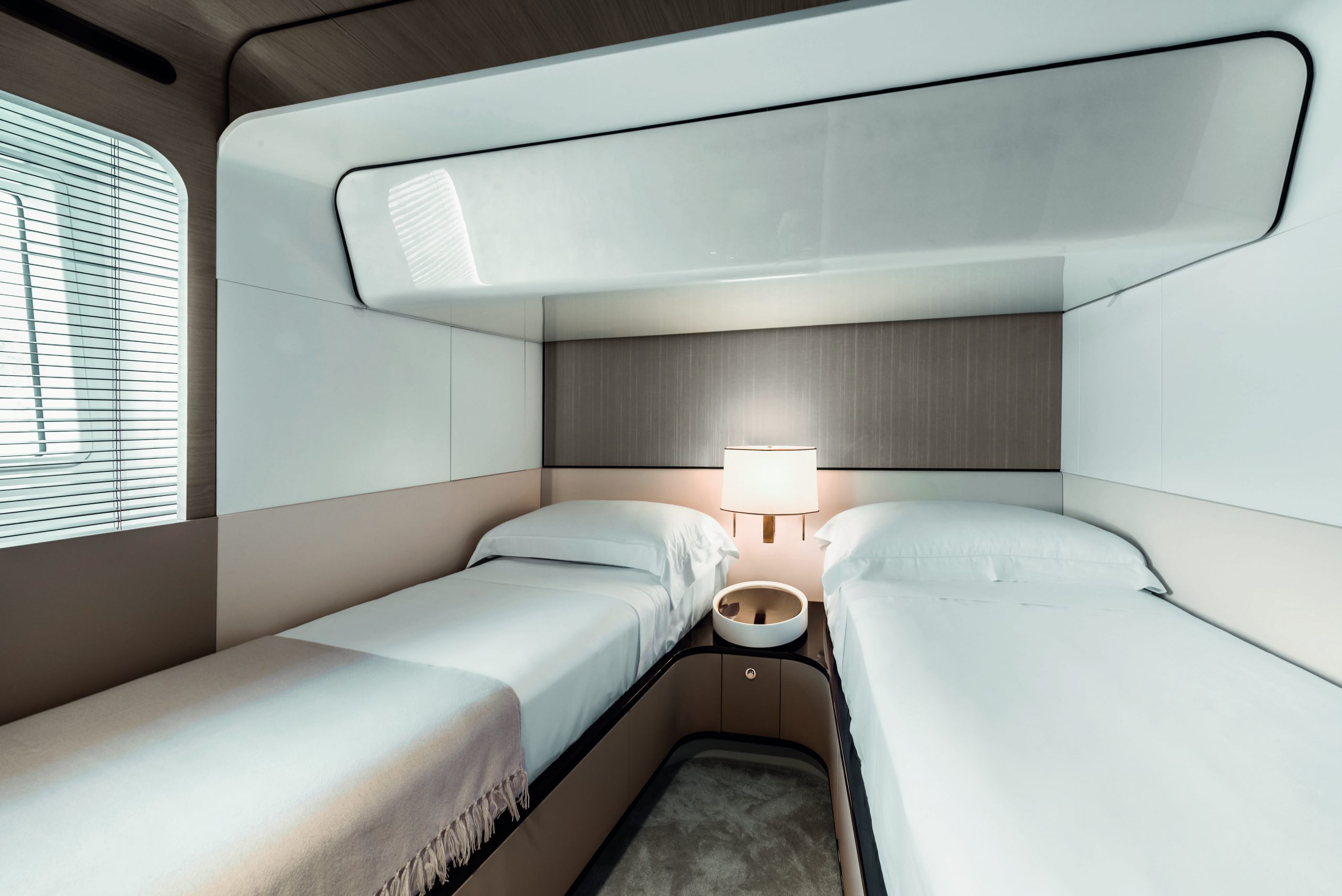 She is able to accommodate 10 guests in five suites with additional cabins for the four crew members.