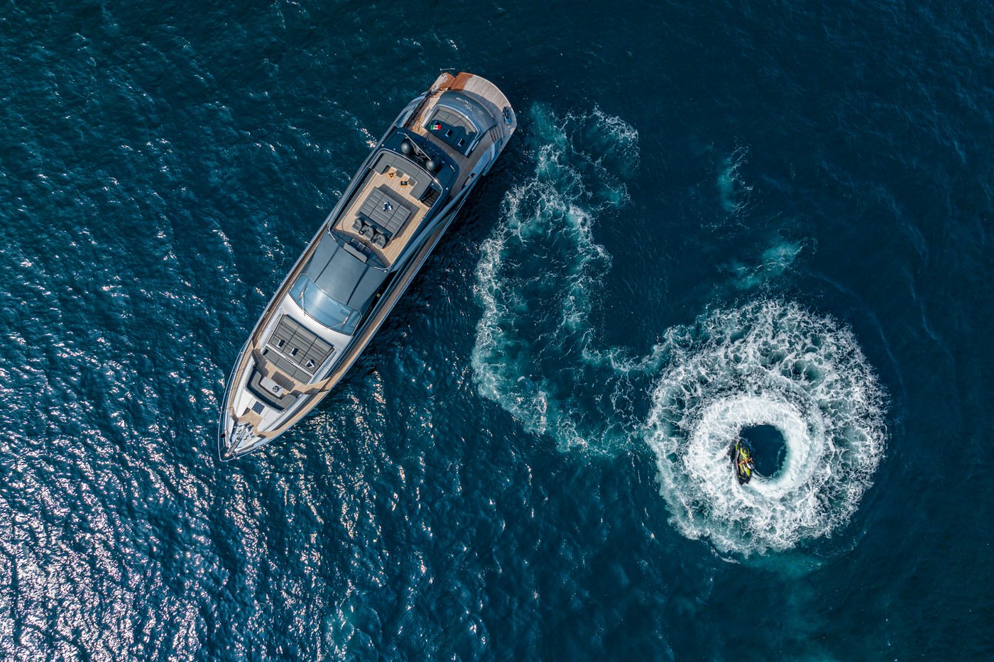 The helm controls are forward providing three captain’s chairs with views across the bow. The guest suites are on the lower deck and configured as a full beam master, bow VIP, additional double and twin suite.