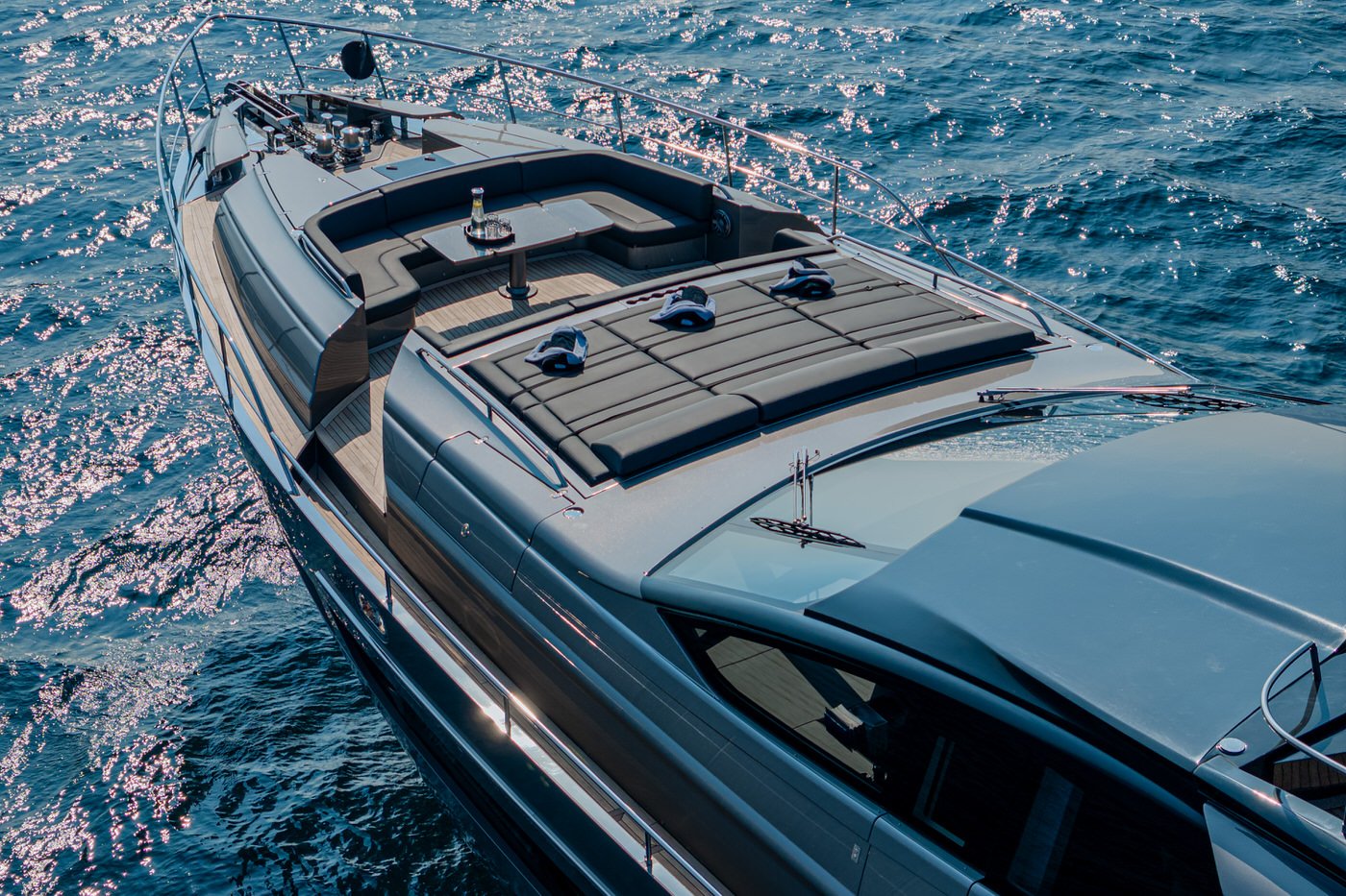 The helm controls are forward providing three captain’s chairs with views across the bow. The guest suites are on the lower deck and configured as a full beam master, bow VIP, additional double and twin suite.