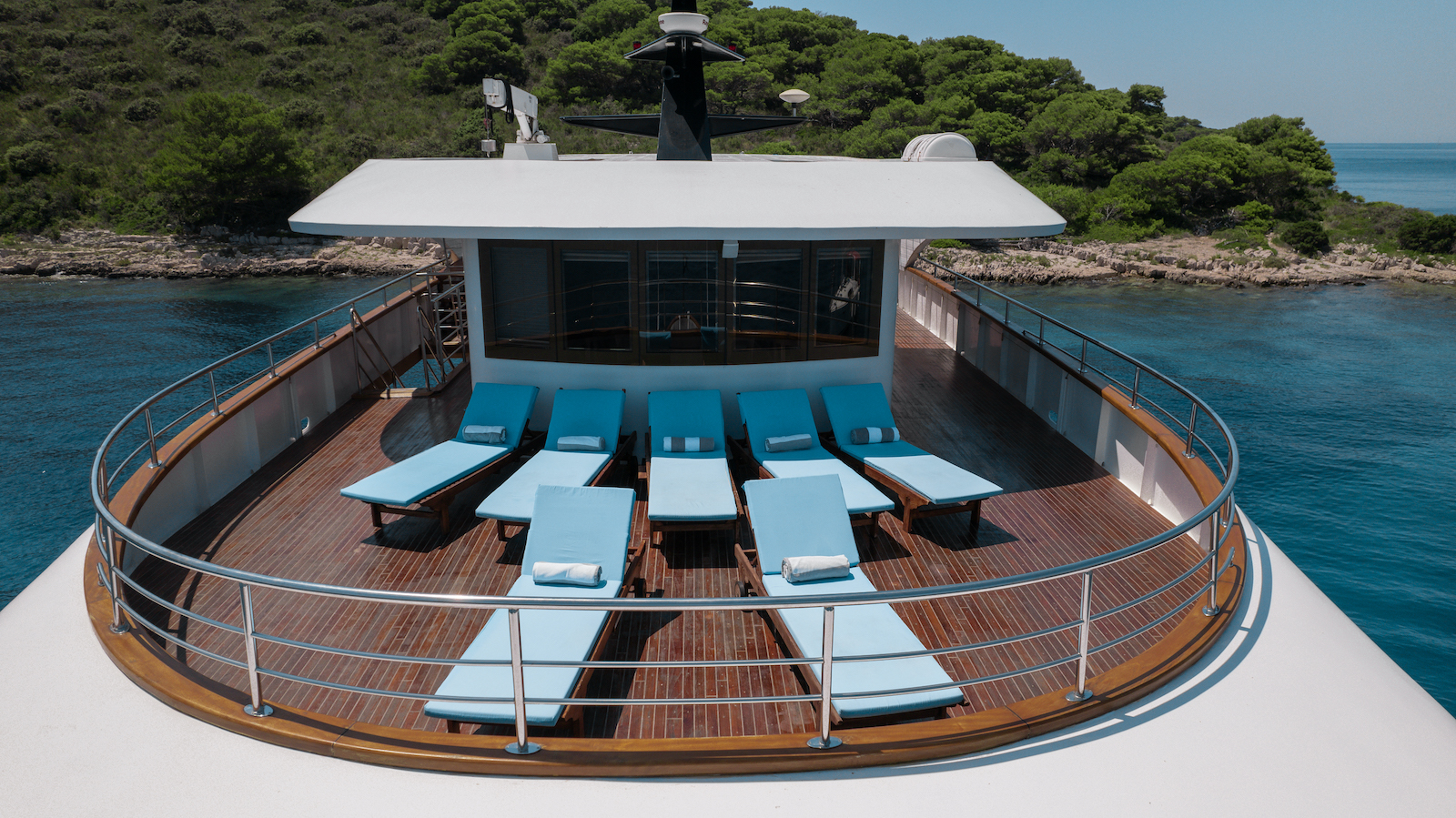 She is ideal for large groups or even corporate charter, offering 24 cabins and sleeping up to 36 guests who will be looked after by a highly professional crew of eleven.