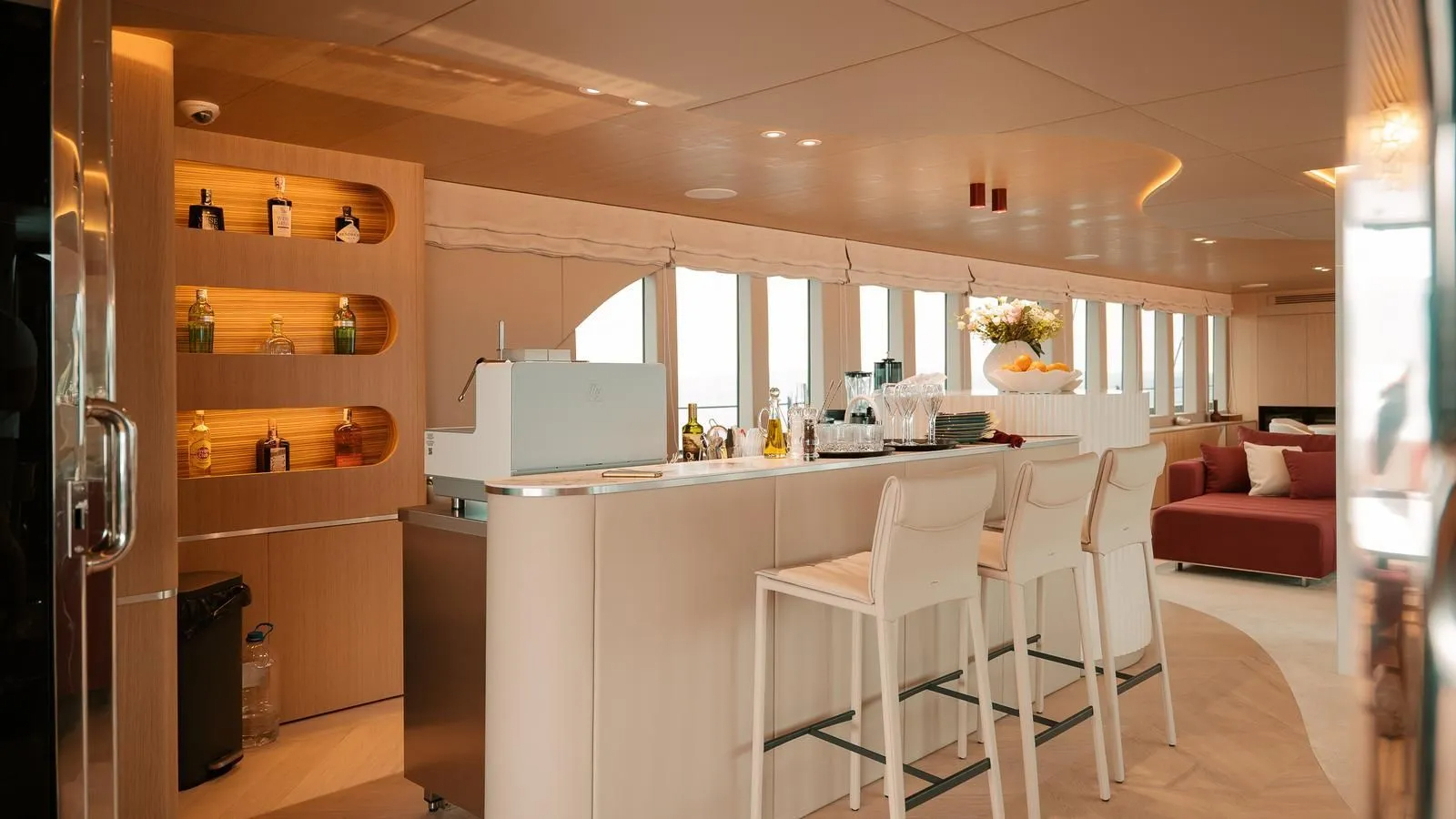 The contemporary flybridge design offers a vast sundeck and a superior quality interior with accommodation for up to 12 guests in six suites.