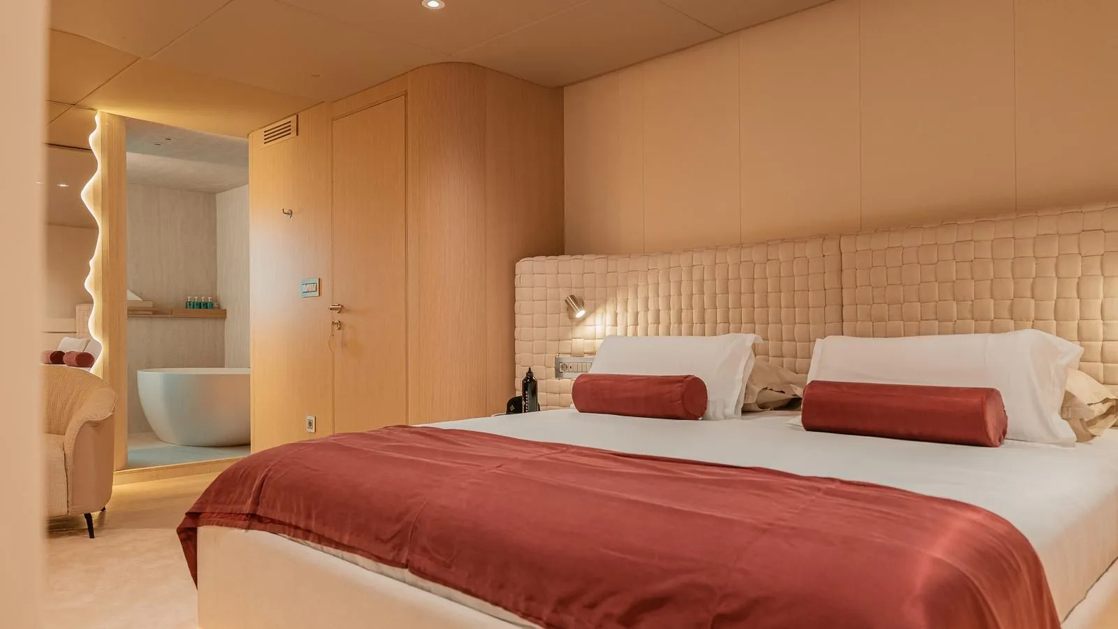 The contemporary flybridge design offers a vast sundeck and a superior quality interior with accommodation for up to 12 guests in six suites.