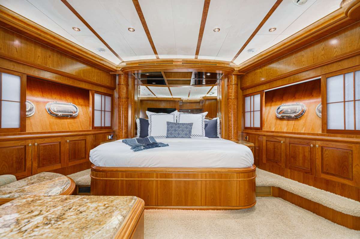 Six guests are accommodated in three suites and four crew are on board throughout the charter.