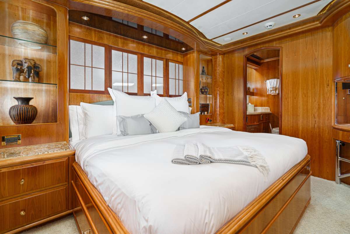 Six guests are accommodated in three suites and four crew are on board throughout the charter.