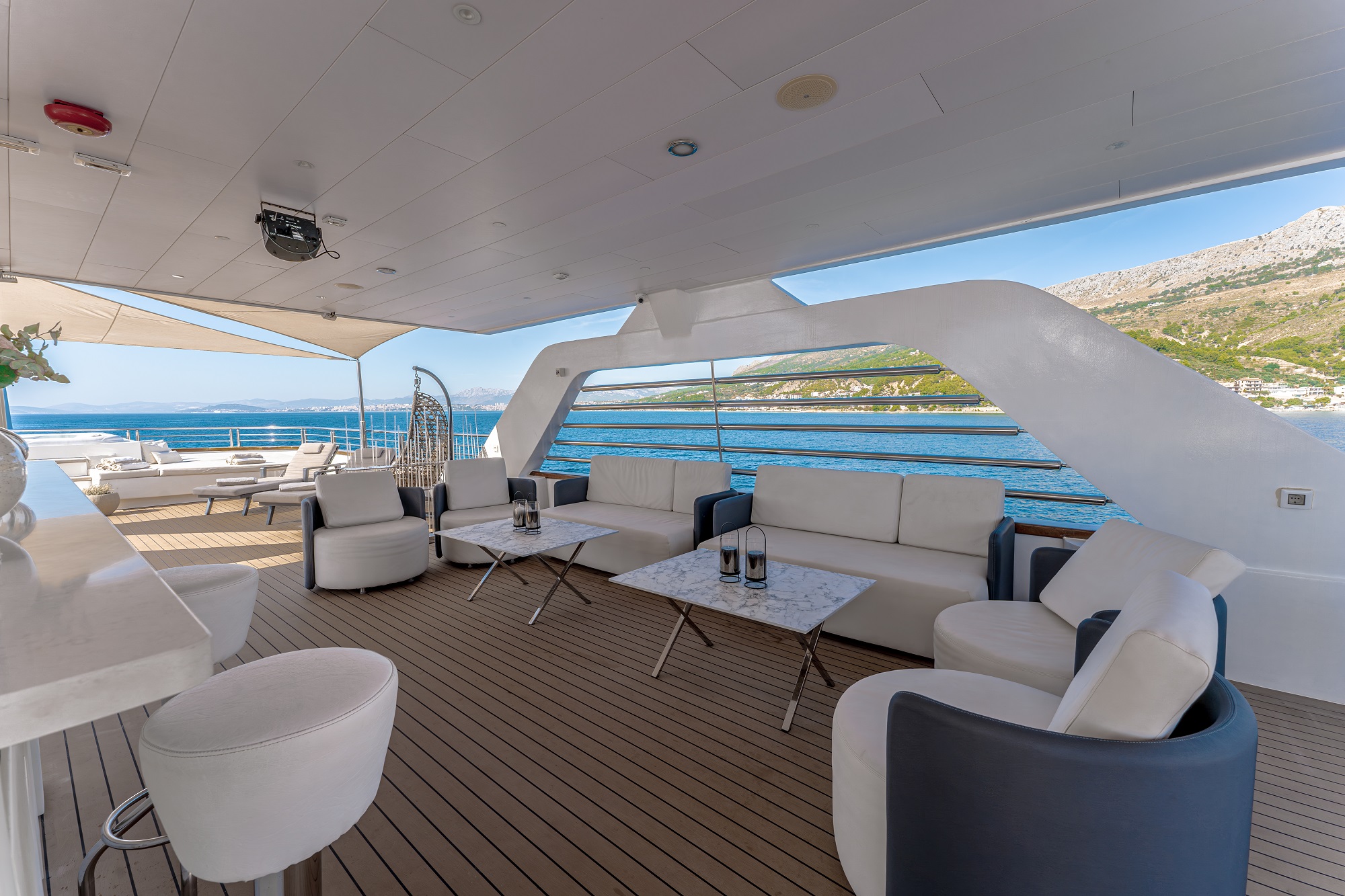 There is an abundance of exterior and interior entertainment space plus a host of luxury features including deck jacuzzi, expansive dining salon and eleven crew members.