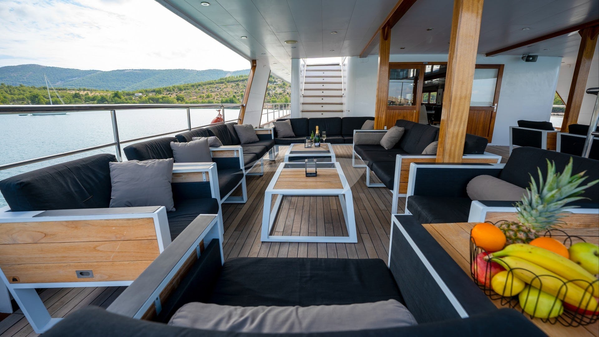 NOTABLE FEATURES OF KARIZMA: ~17 immaculate suites ~Main and lower deck cabins ~Deck jacuzzi ~Spacious deck and interior lounges ~Great selection of water toys ~Air conditioning ~WiFi