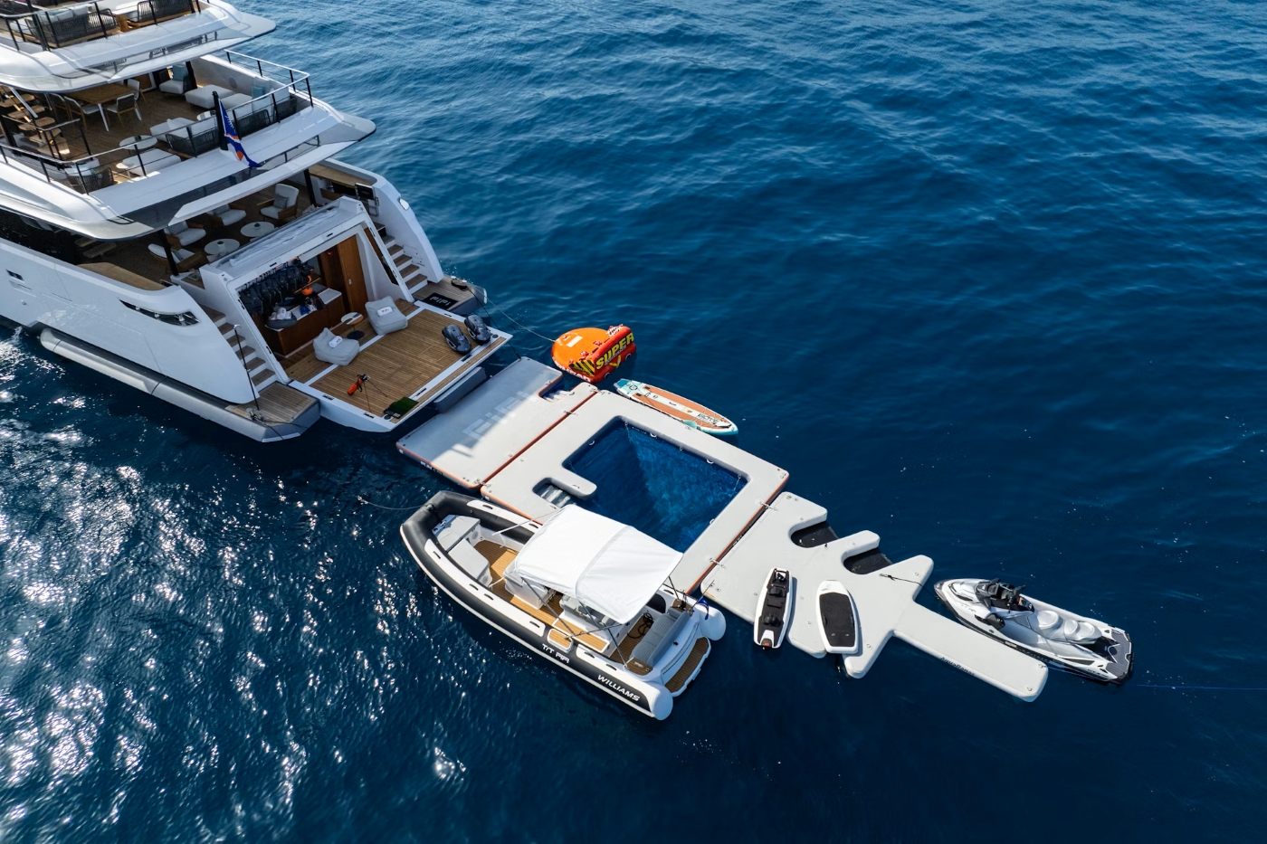 Steps lead down to the swim platform from where the crew will launch the water toys.