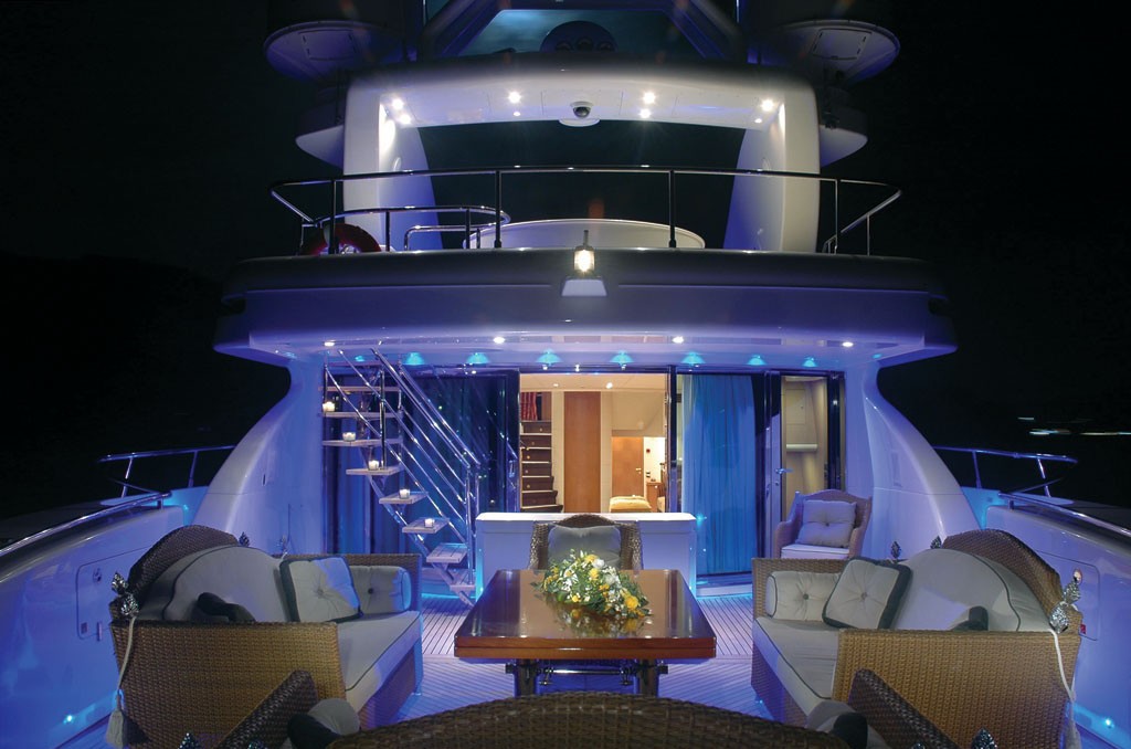 The main yachts salon has access to the upper salon and the second salon leading through the master cabin. The yachts Sky lounge has a very comfortable lounging area and coffee table with access to the sundeck.