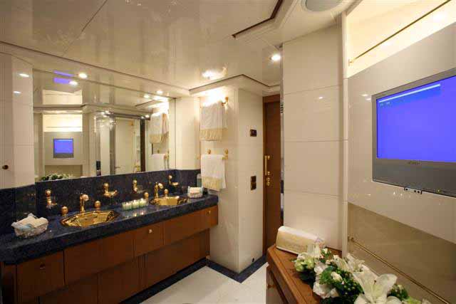 M/Y Alfa XII can accommodate up to 12 guests. The yachts master stateroom boasts two desks, a walk-in closet, a TV, safe and en suite facilities with a TV in the bathroom. The yachts two V.I.P. Staterooms, both have Pullman berths, a safe box and en suite facilities. Her two Twin cabins also have Pullman bunks and en suite facilities.