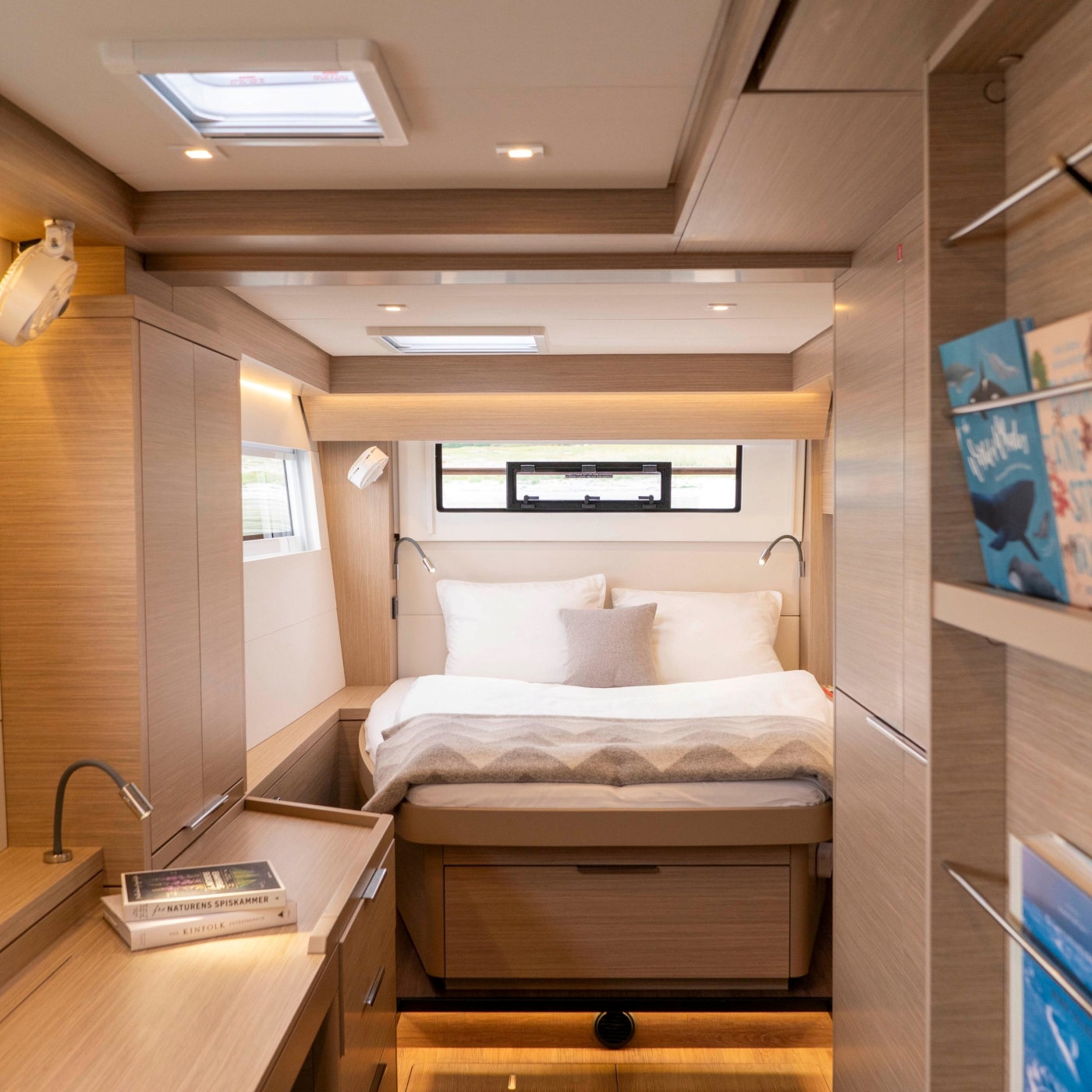 The guest accommodation is on the lower deck hulls. Accommodation is beautifully presented with two ensuite VIP cabins in the port hull and ...